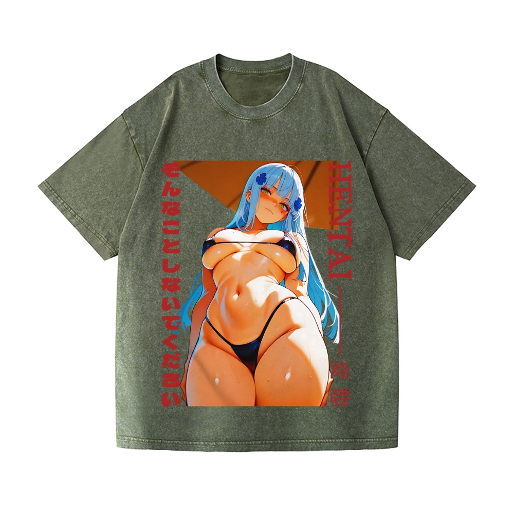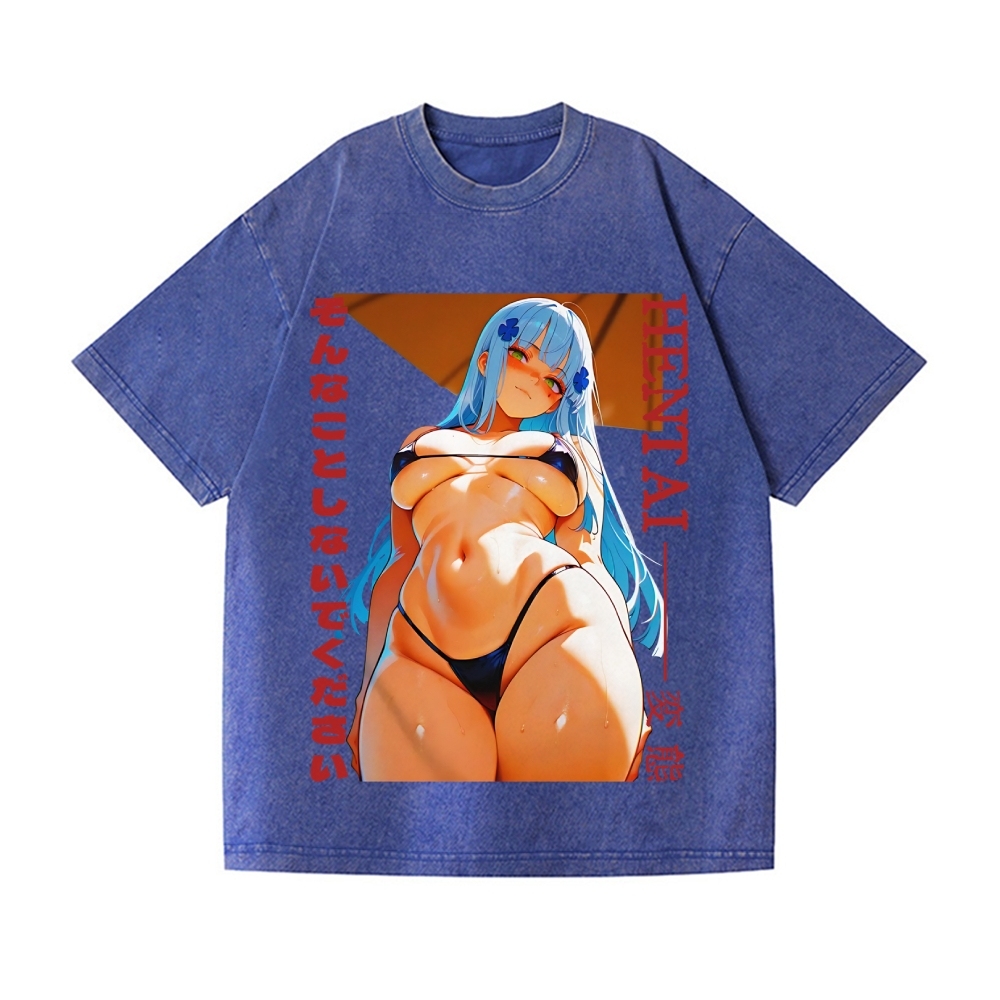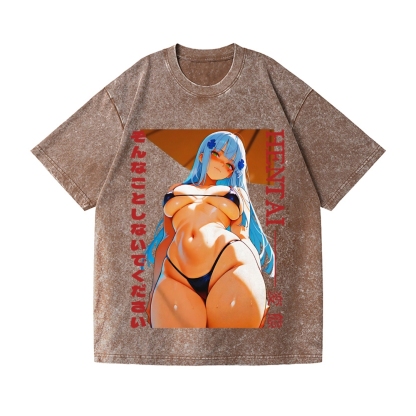Ecchi Waifu Vintage Wash Japanese Design T-Shirt