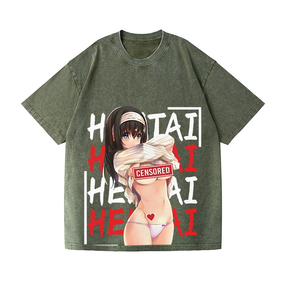 Hentai Ecchi Waifu Vintage Wash Japanese Design T-Shirt