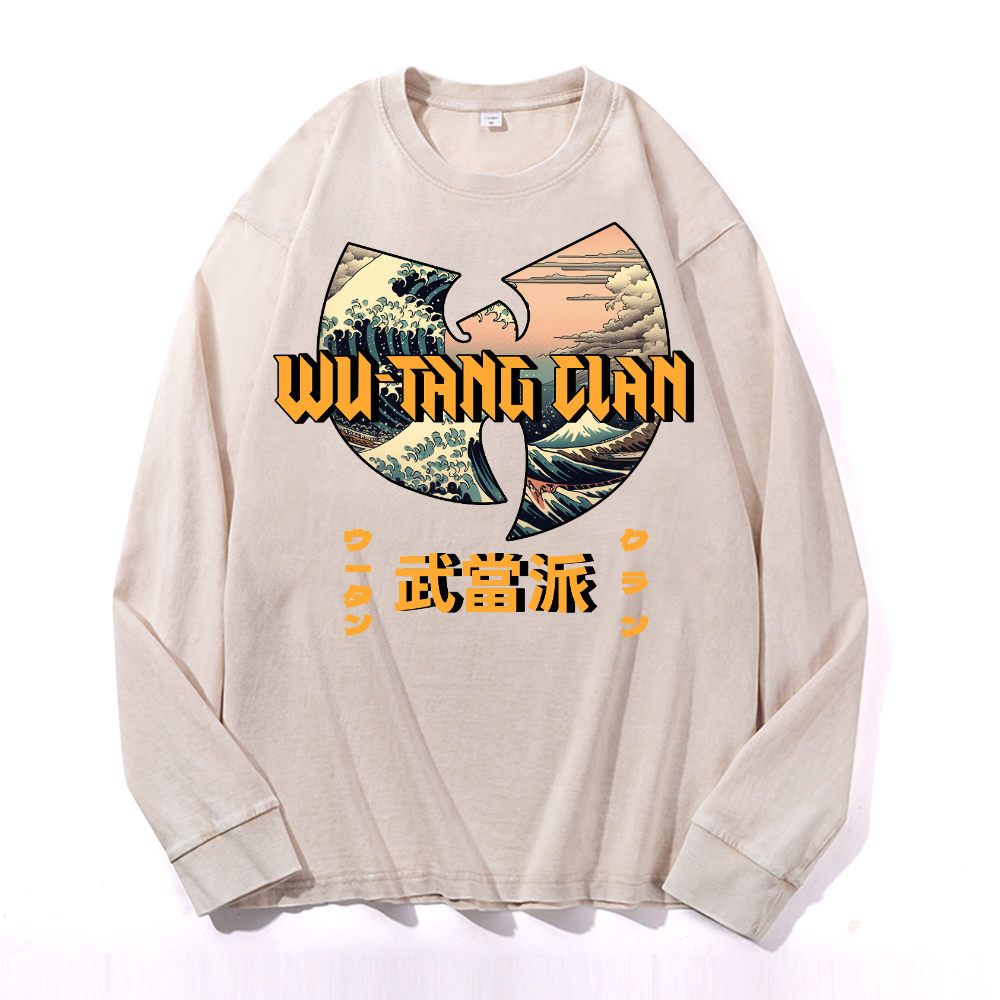 Wu Tang Clan Ukiyoe Wave Vintage Washed Cotton Back Art Long-sleeve T-shirt