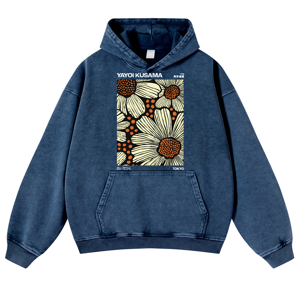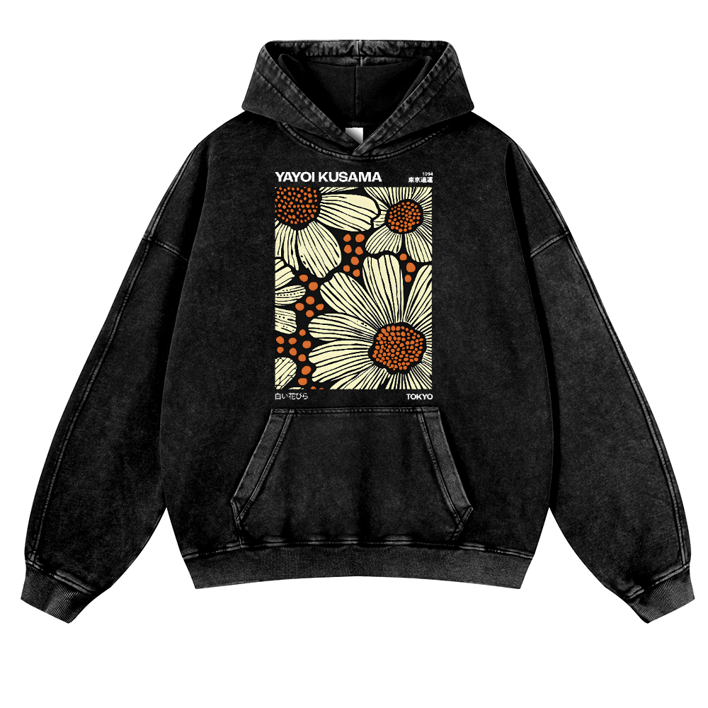 Yayoi Kusama Flower Vintage Washed Thick Cotton Hoodie