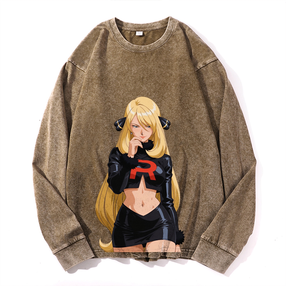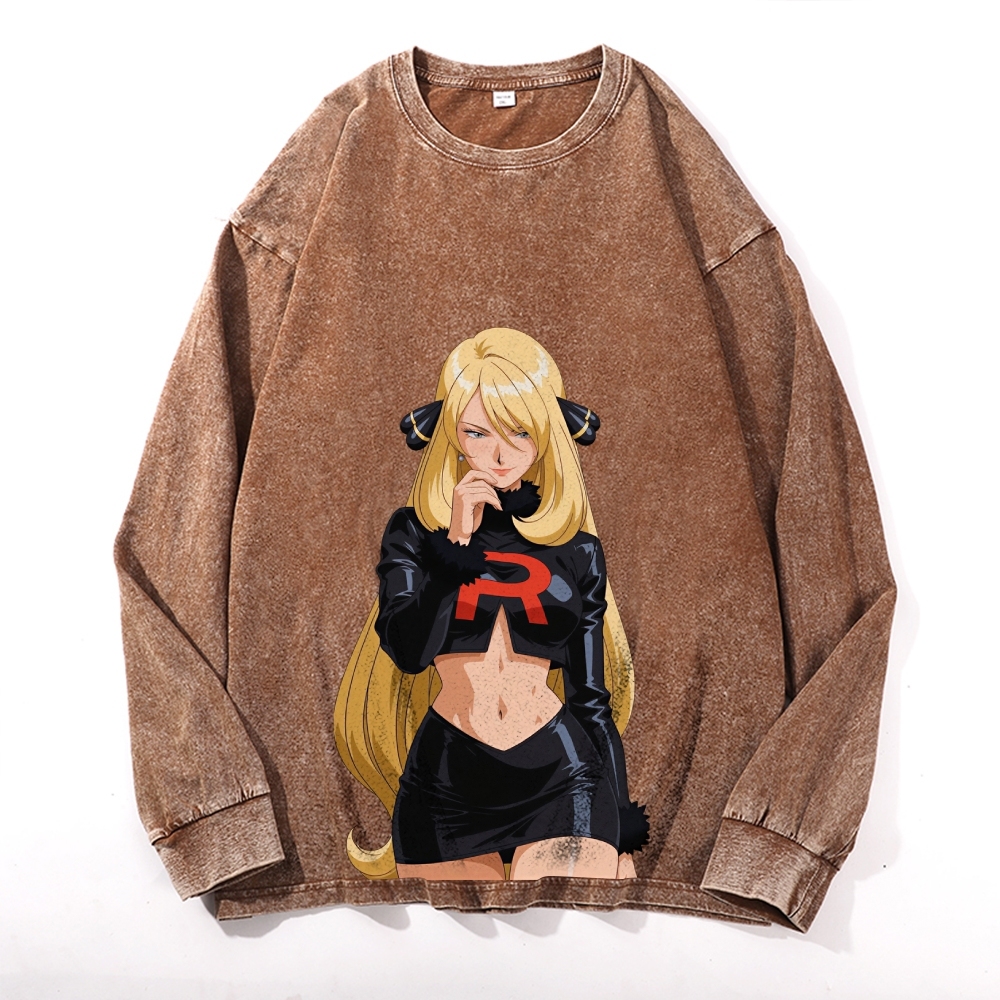 Cynthia Printed Vintage Cotton Wash Crewneck Long-Sleeve T-Shirt