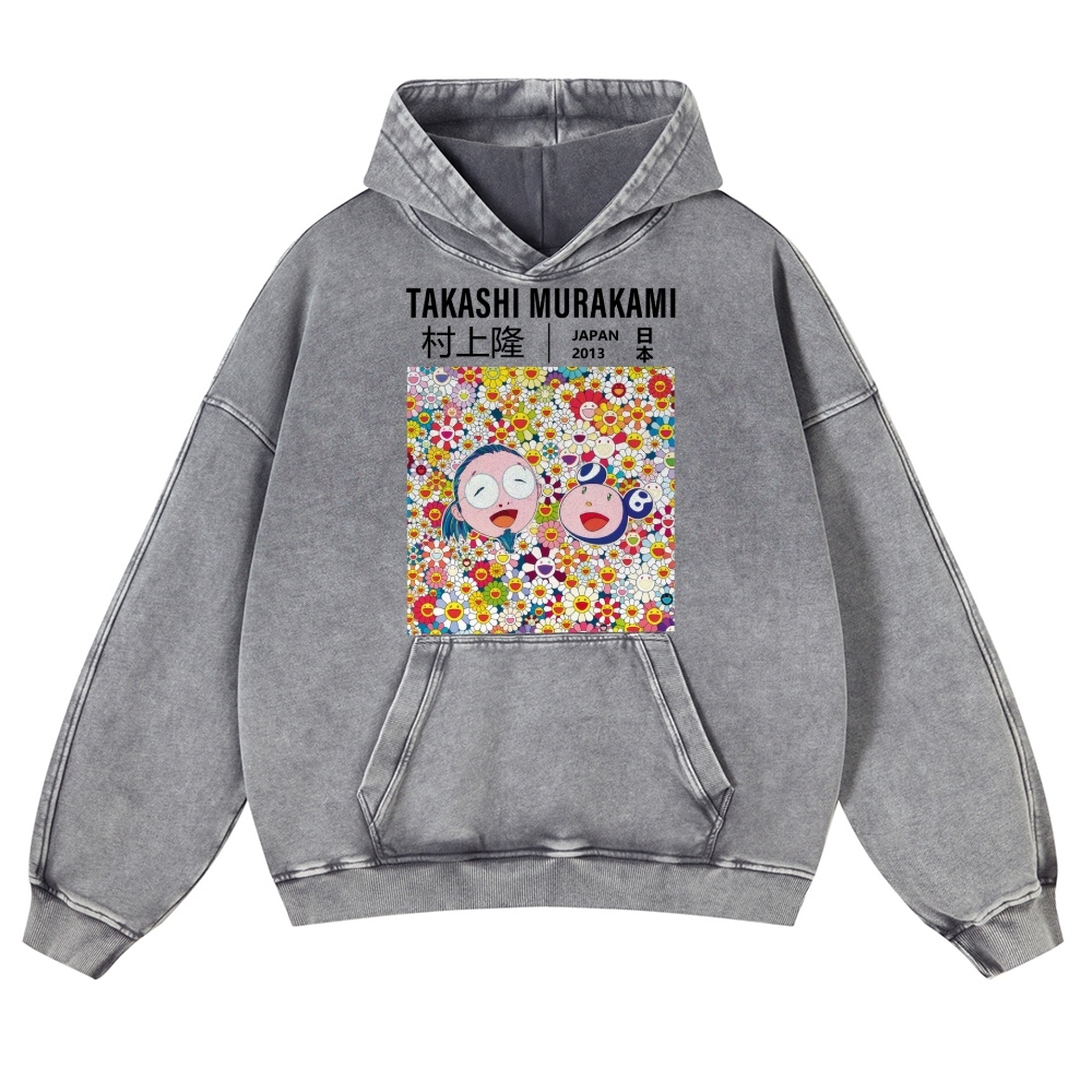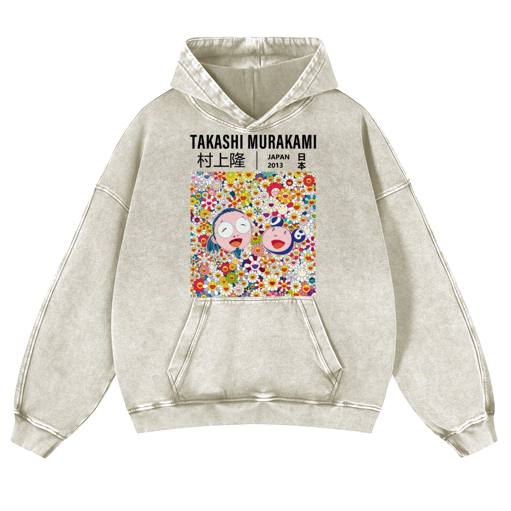TM Flower Vintage Washed Thick Cotton Hoodie