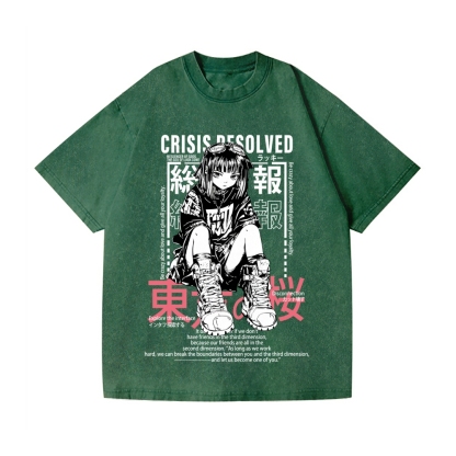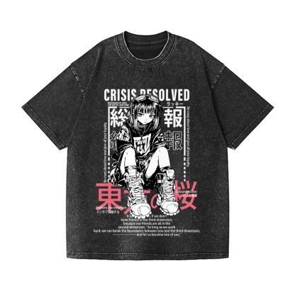 Anime Sakura Girl Vintage Wash Japanese Design T-Shirt