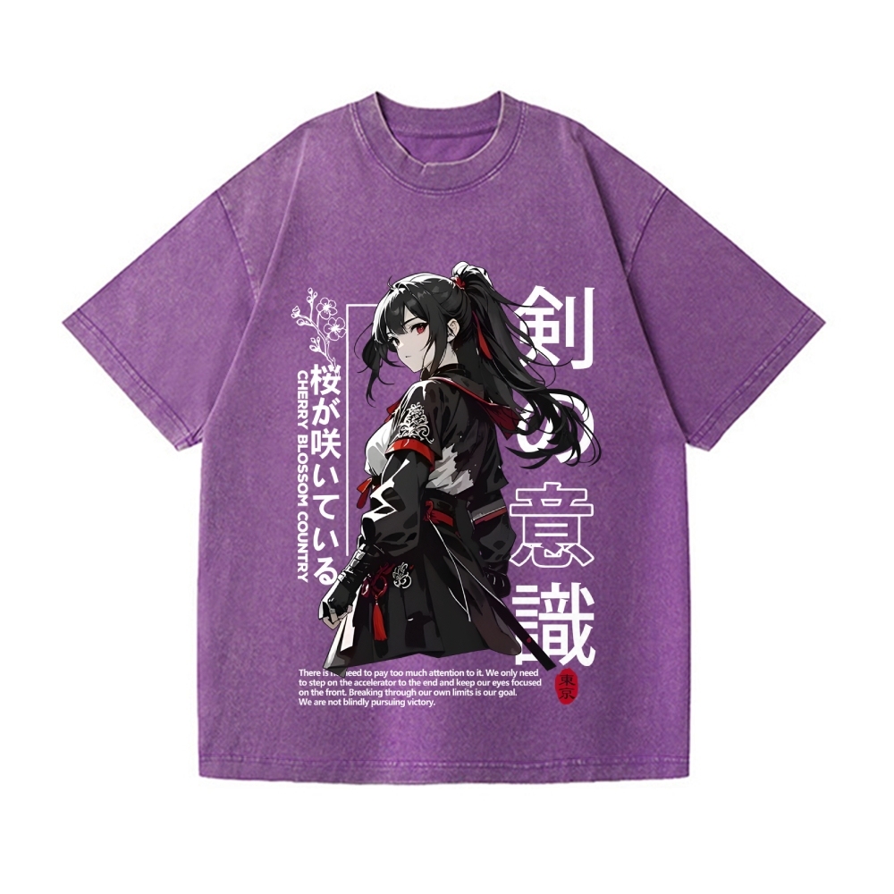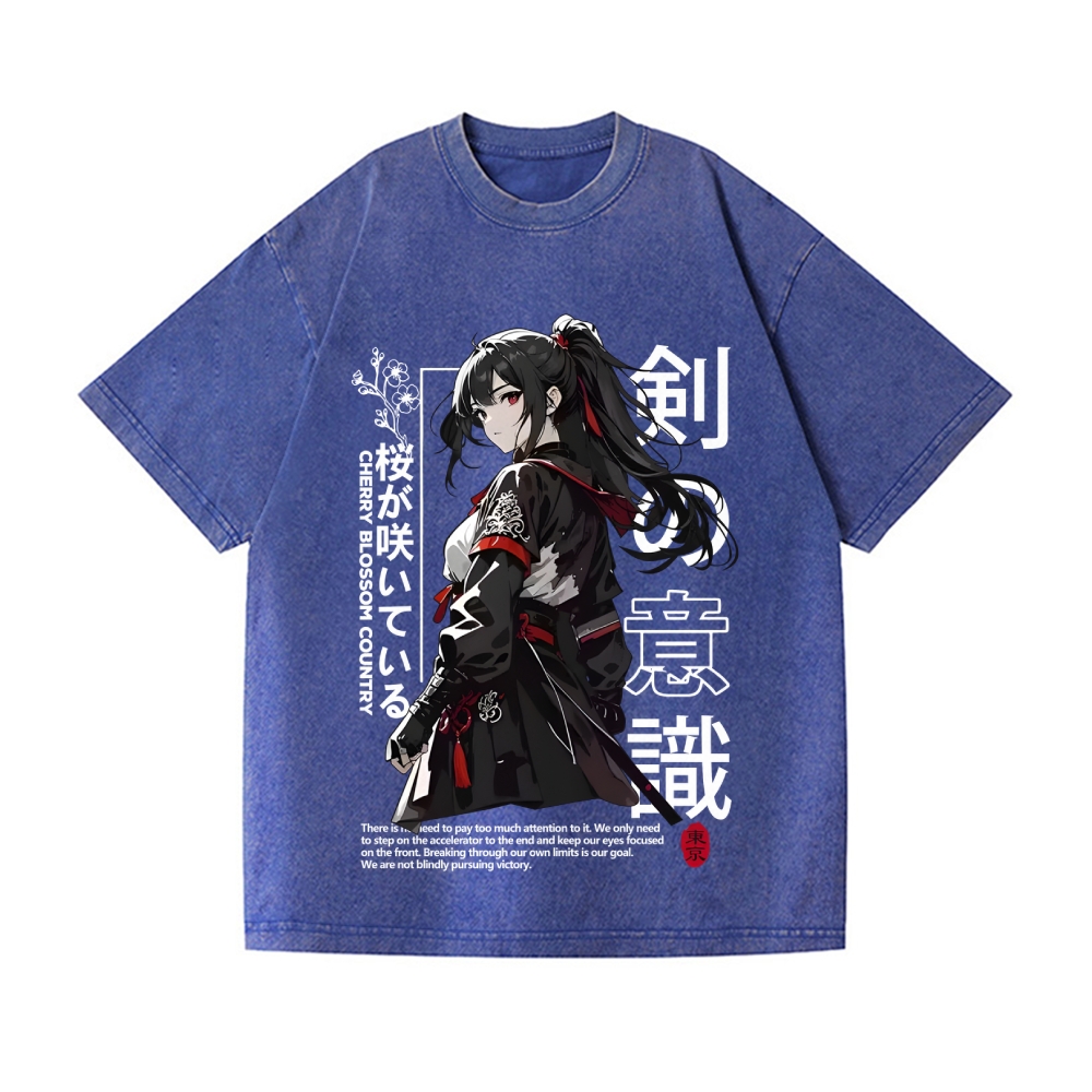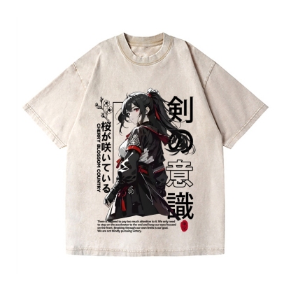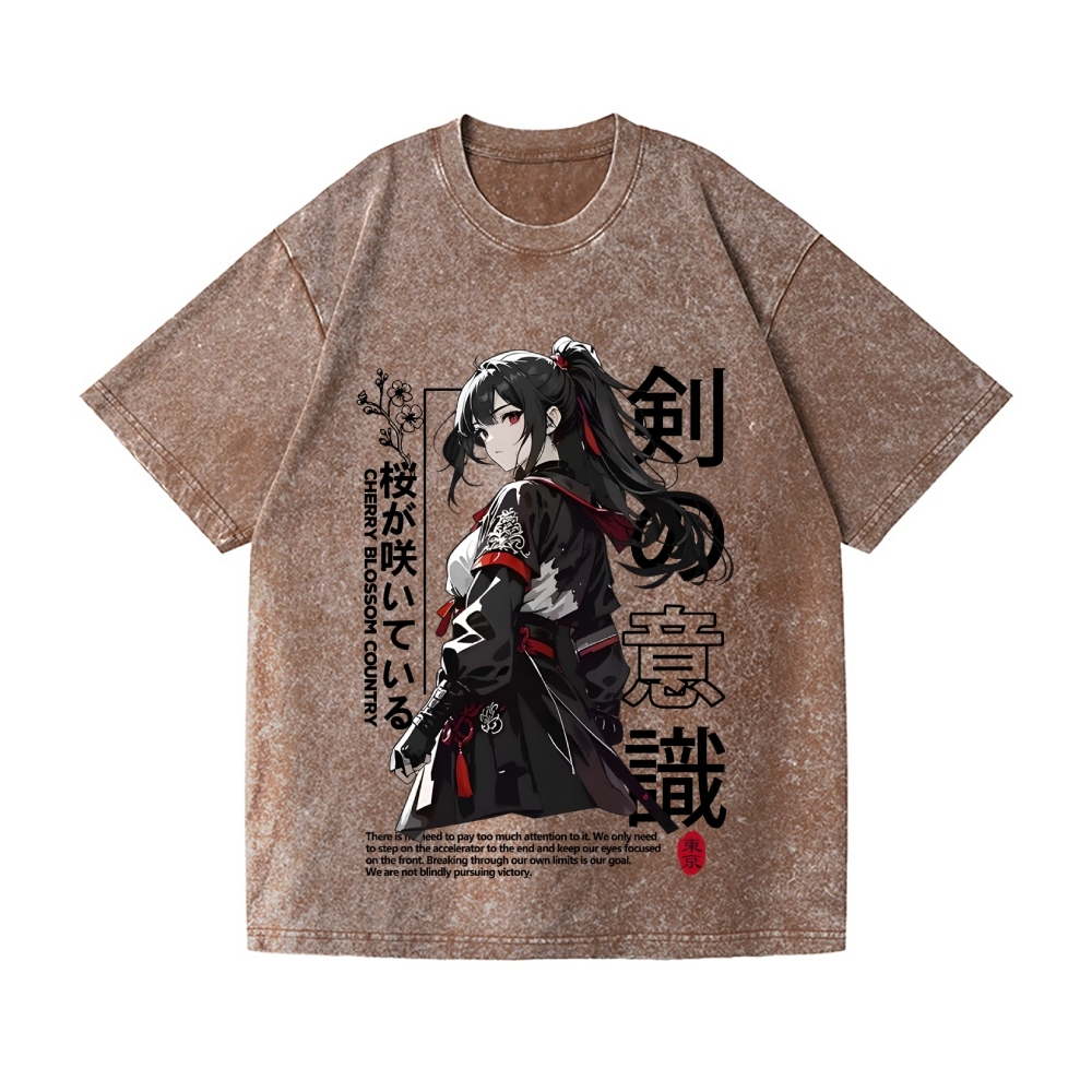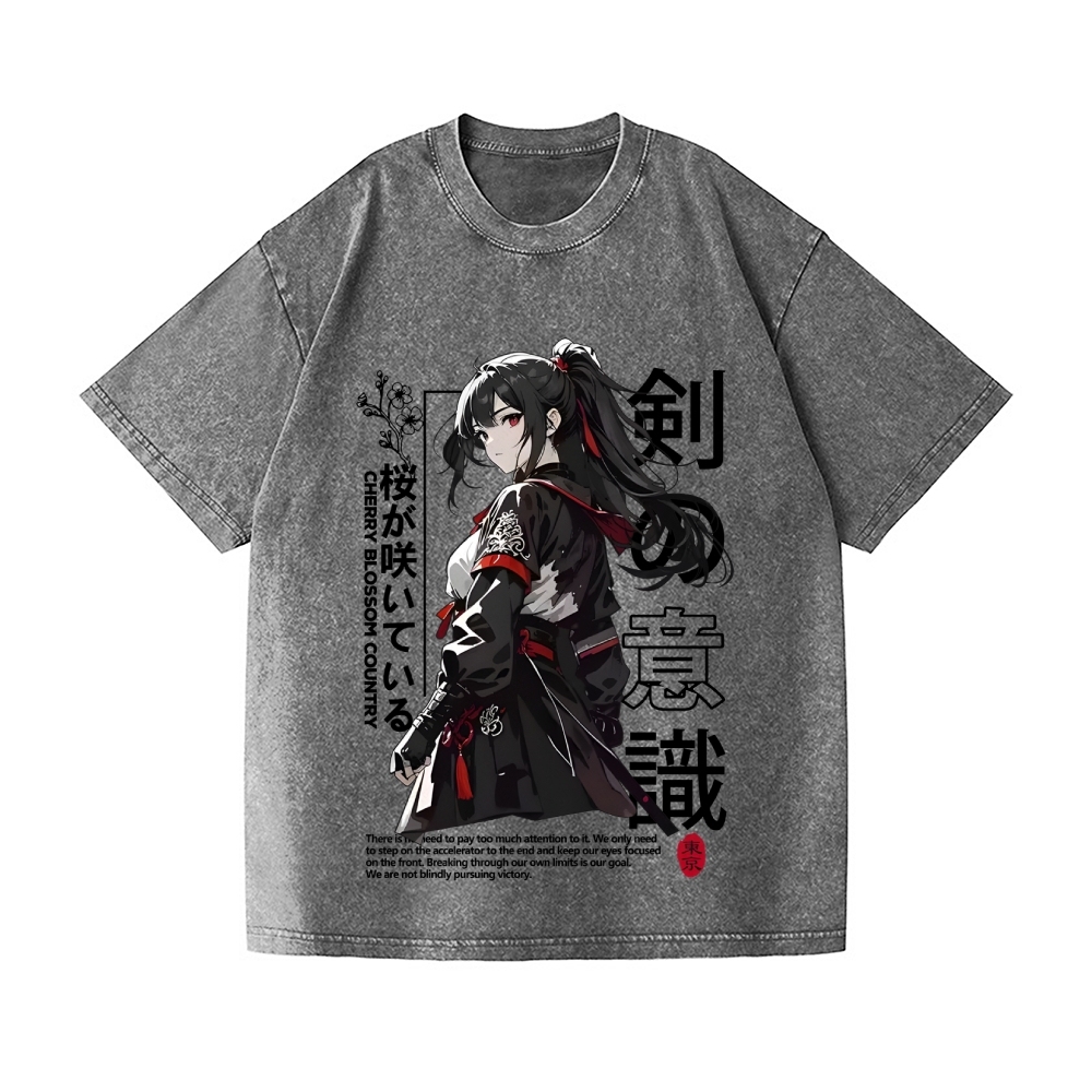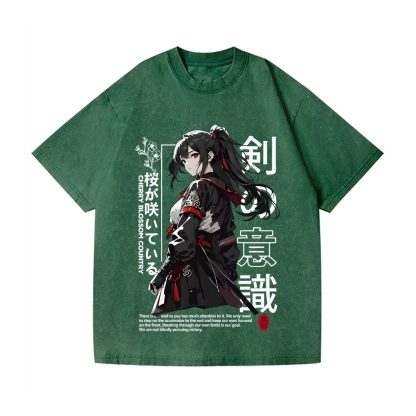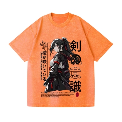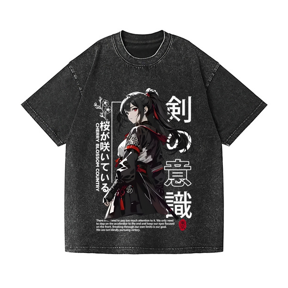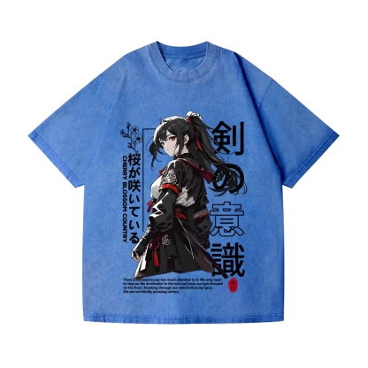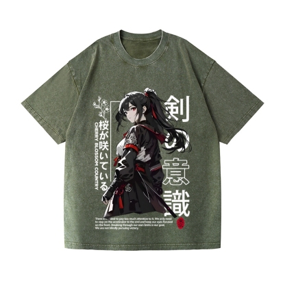 Anime Sakura Sword Girl Vintage Wash Japanese Design T-Shirt