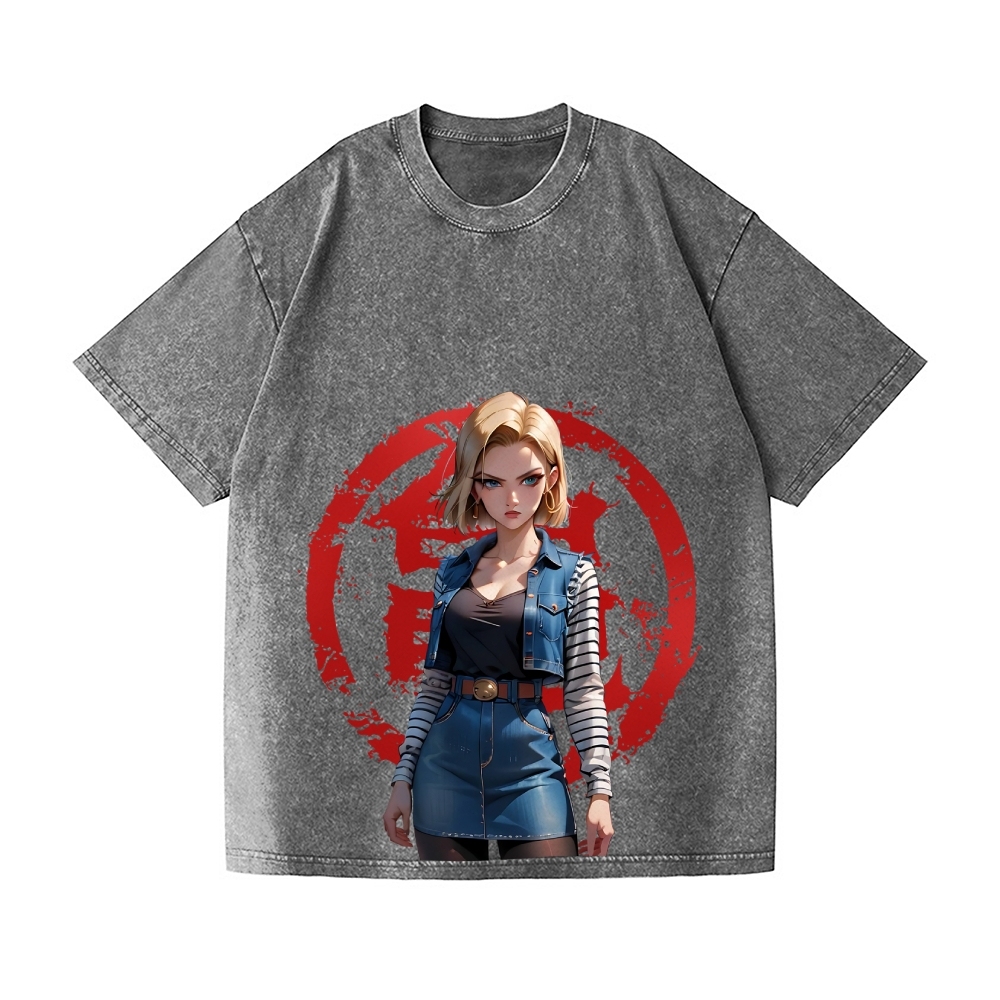 DB Android 18 Vintage Wash Japanese Design T-Shirt