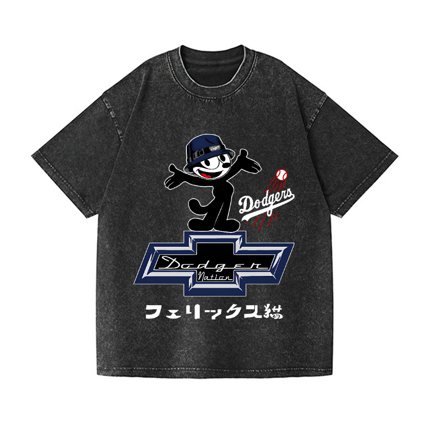Dodgers Felix the Cat Baseball Vintage Wash Japanese Design T-Shirt