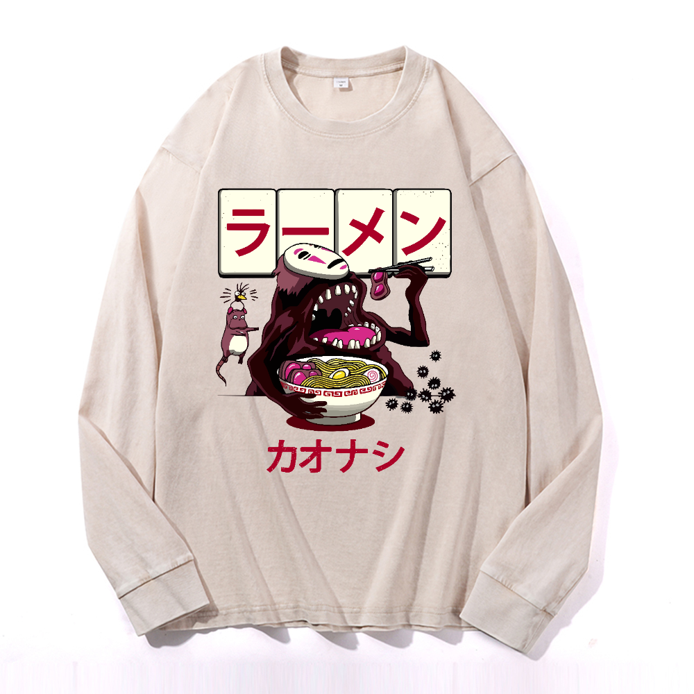 Ghibli Spirited Away Ramen Anime Vintage Cotton Wash Crewneck Sweatshirt