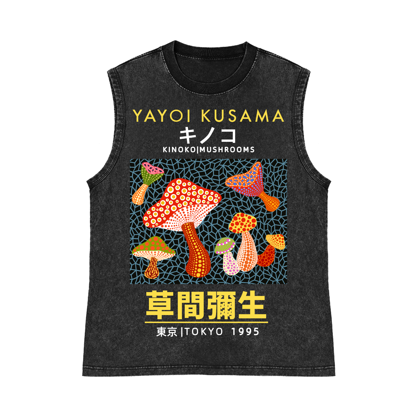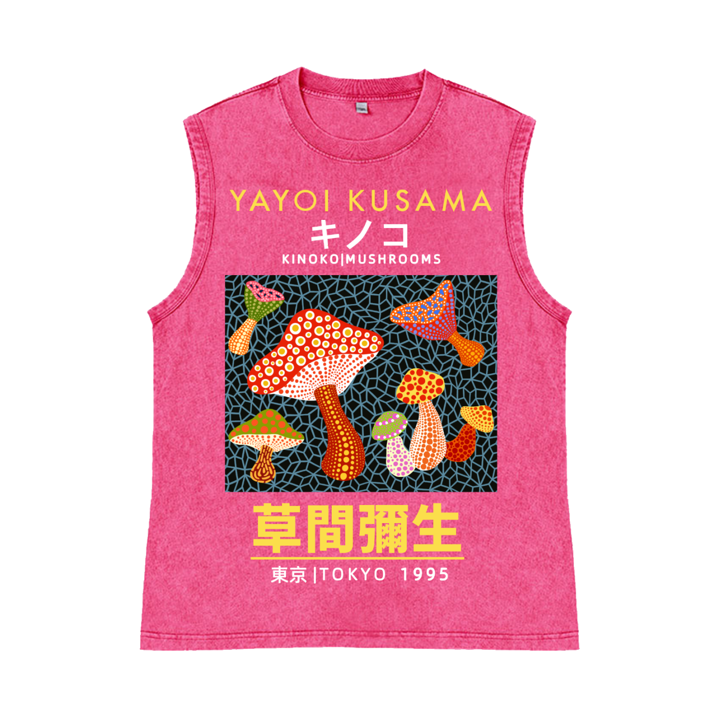 Yayoi Kusama Mushroom Pure Cotton Wash-Dyed Sleeveless Tank Top