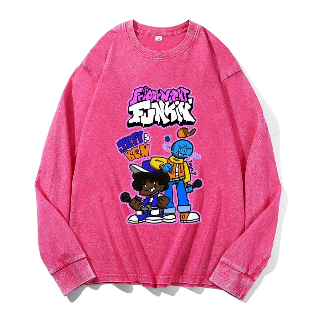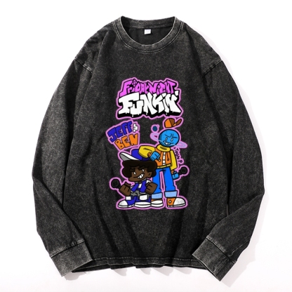 Friday Night Funkin Vintage Cotton Wash Crewneck Long-Sleeve T-Shirt