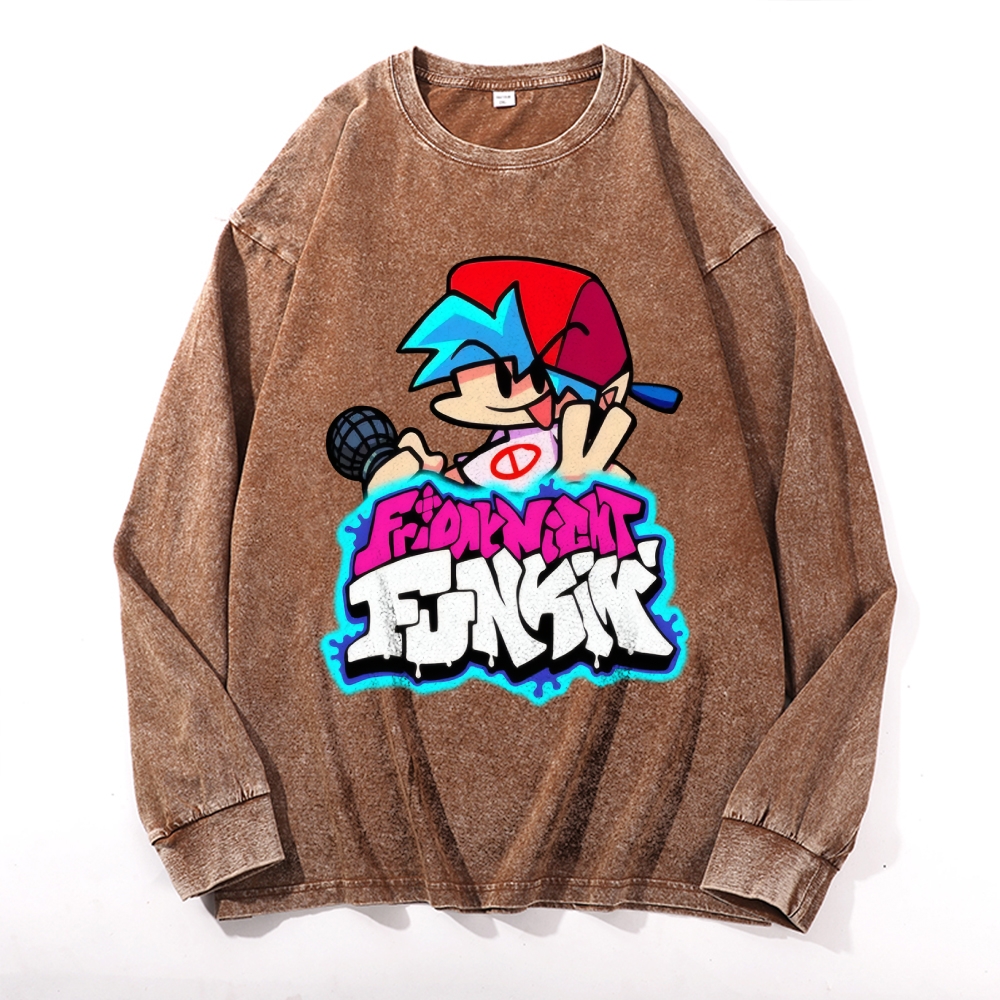 Friday Night Funkin Vintage Cotton Wash Crewneck Long-Sleeve T-Shirt