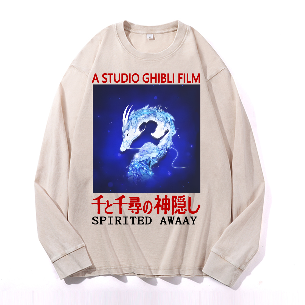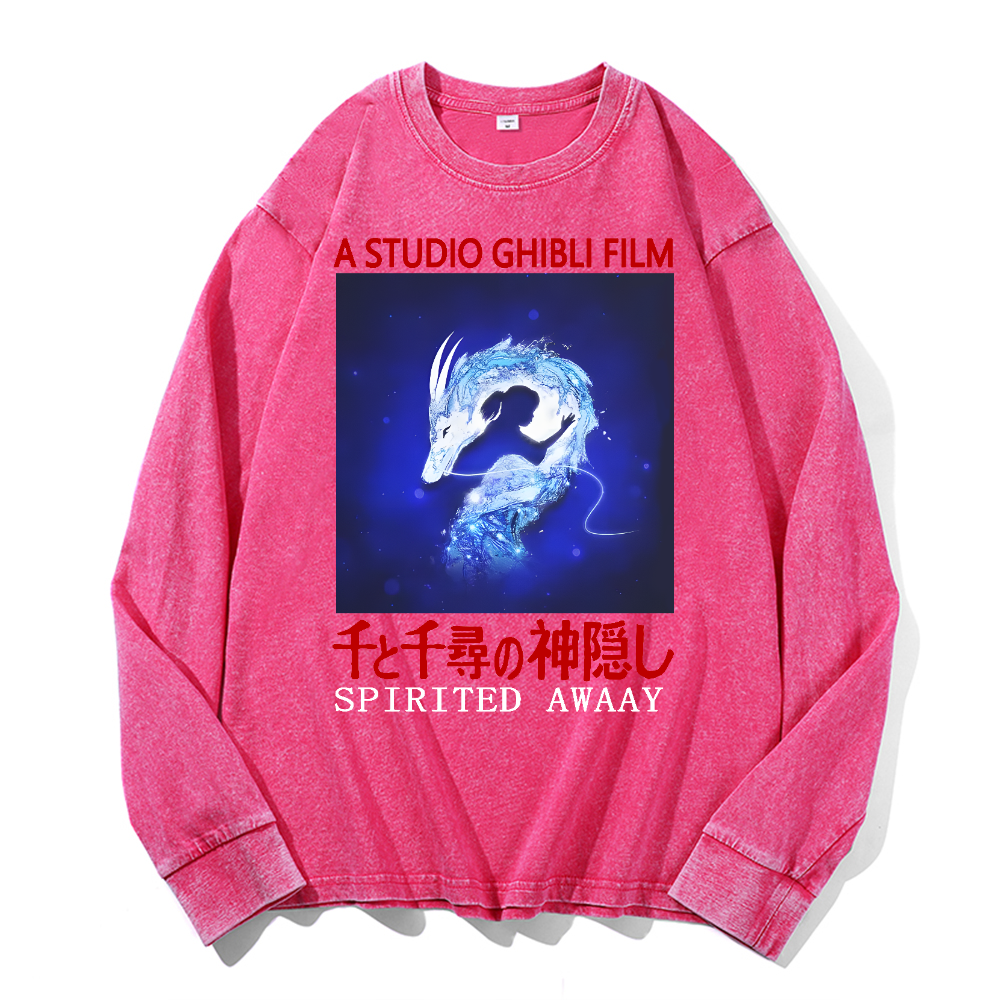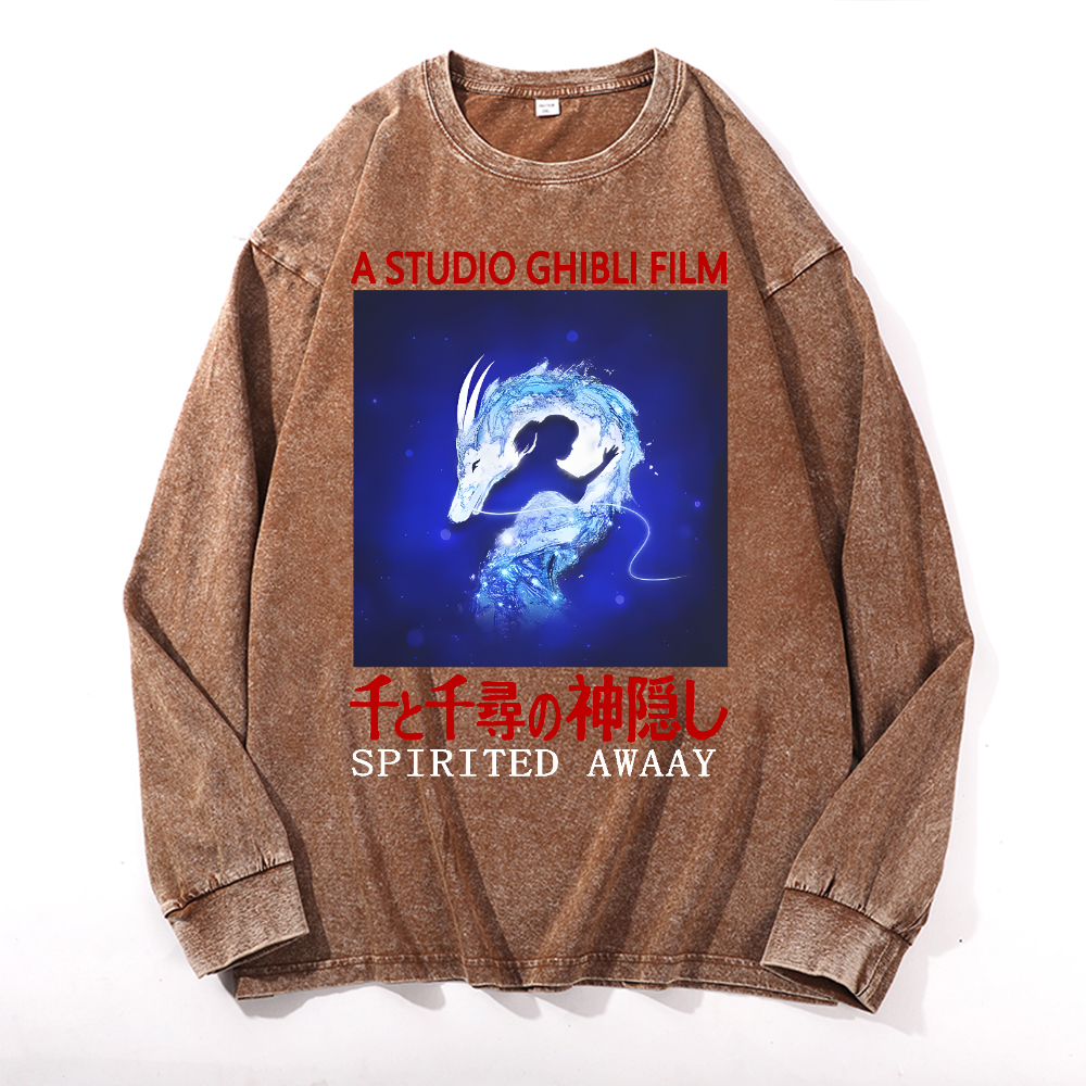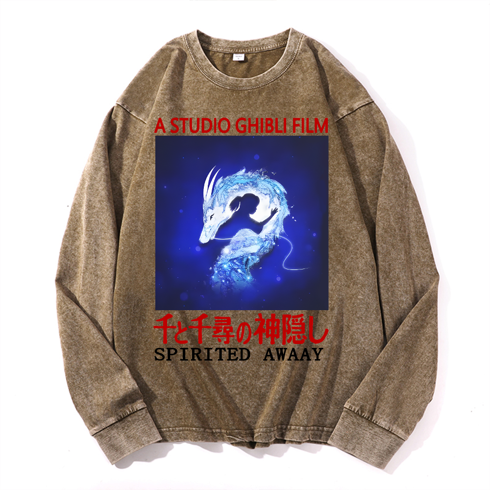 Hayao Miyazaki Spirited Away Ghibli Anime Vintage Cotton Wash Crewneck Sweatshirt