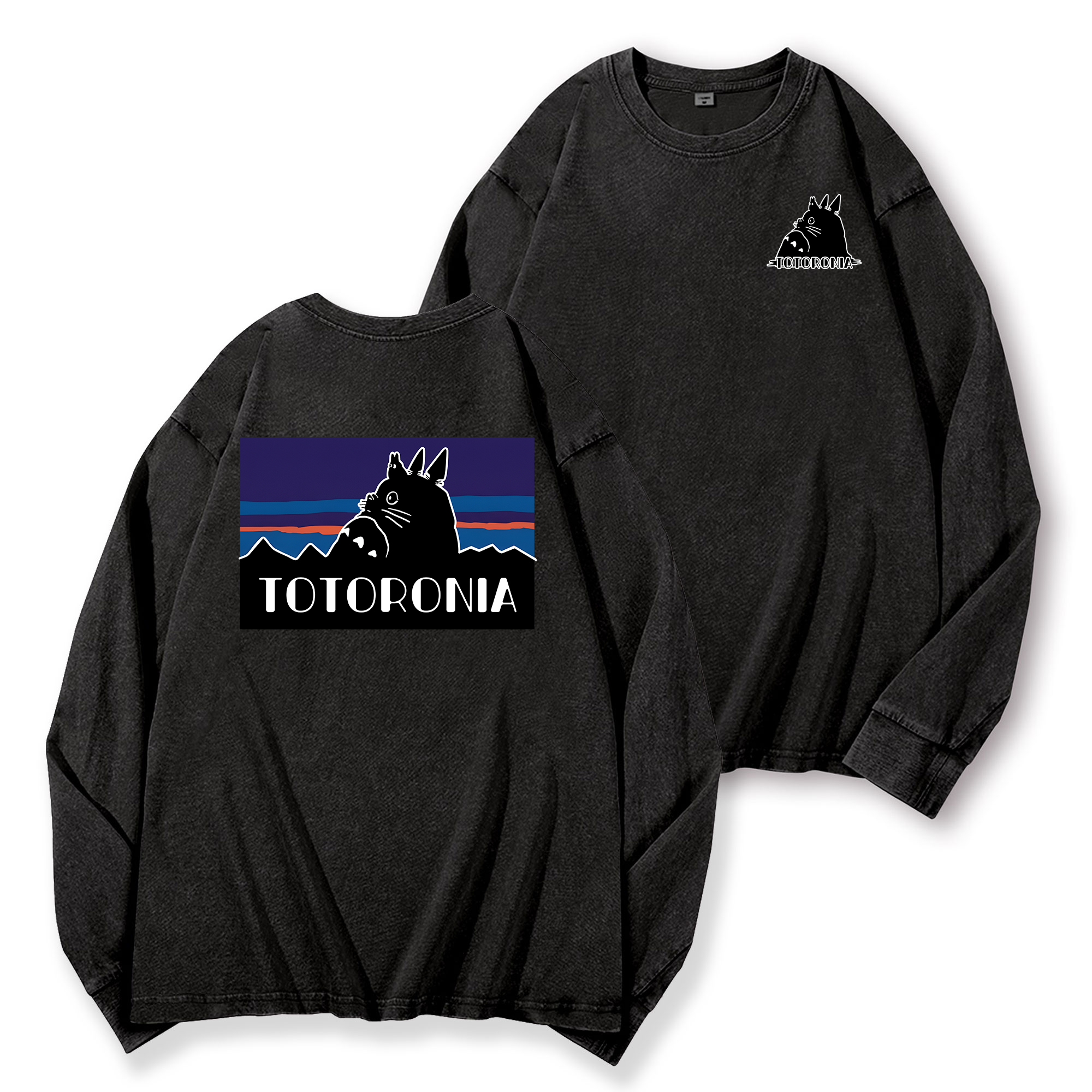 Ghibli Totoro Vintage Washed Cotton Back Art Long-sleeve T-shirt