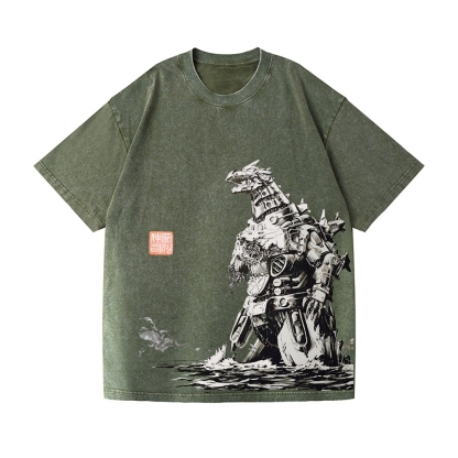 Mecha Kaiju Vintage Wash Japanese Design T-Shirt