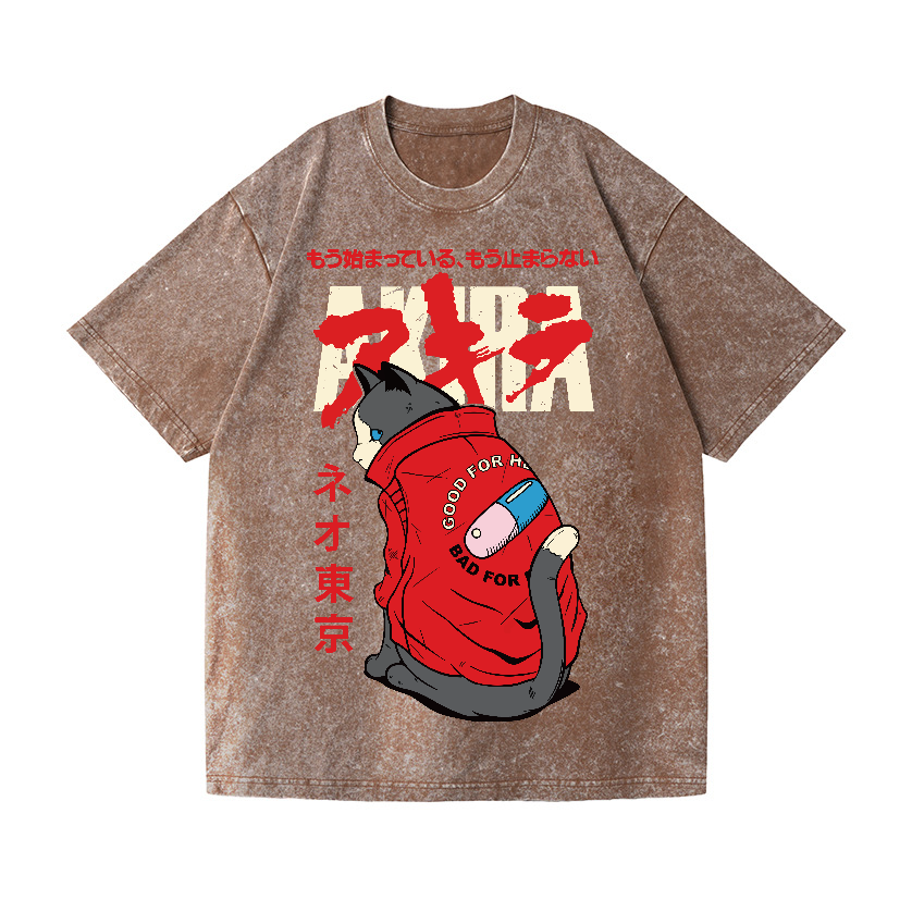 Akira Cat Vintage Wash Japanese Design T-Shirt