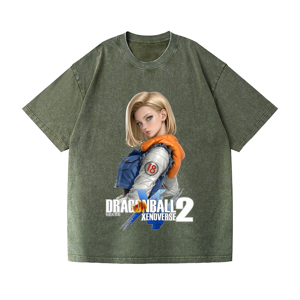 DB Android 18 Vintage Wash Japanese Design T-Shirt