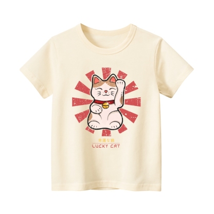 Lucky Cat Vintage Kids Cotton T-shirt