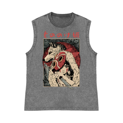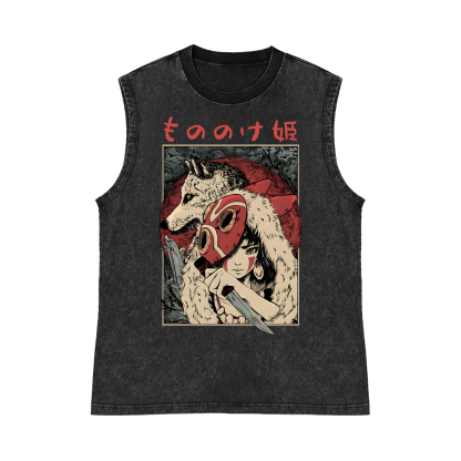 Ghibli Mononoke Hime Princess Mononoke Pure Cotton Wash-Dyed Sleeveless Tank Top