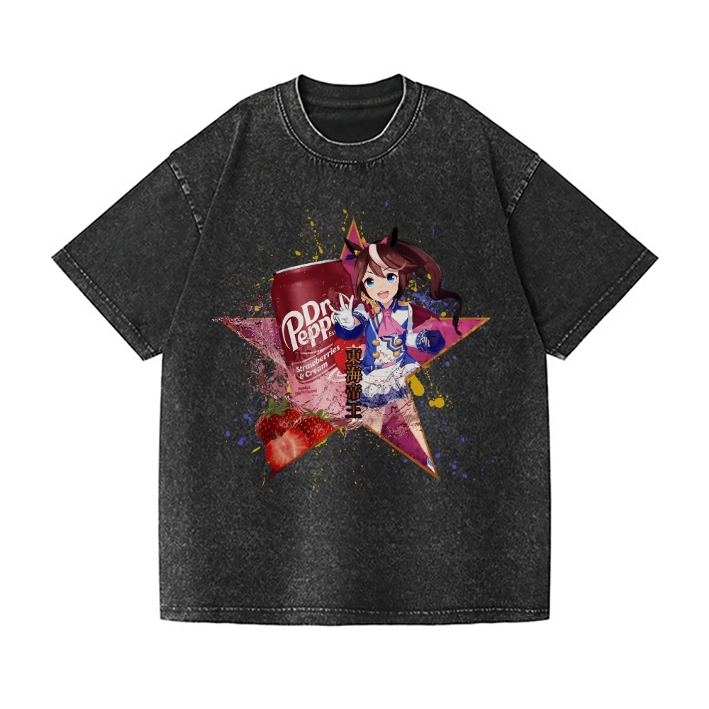 The Tokai Teio Uma Musume Drink Lover Vintage Wash Japanese Design T-Shirt