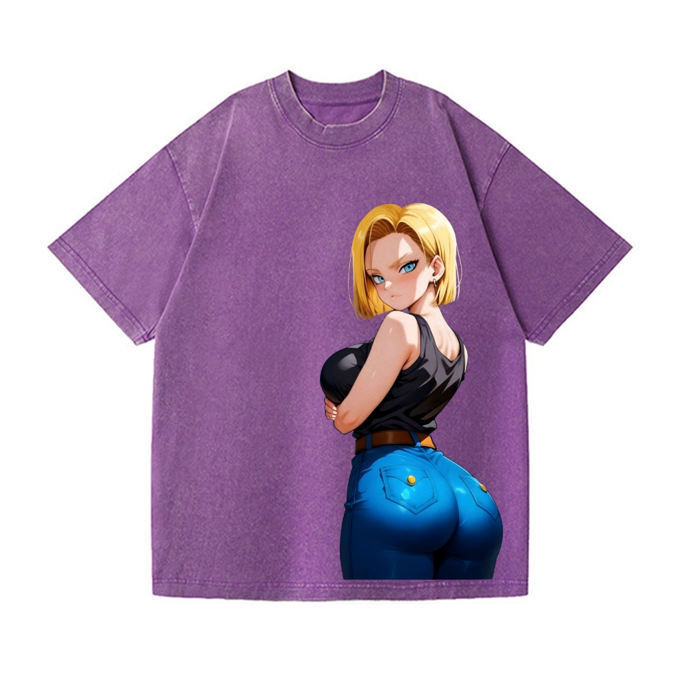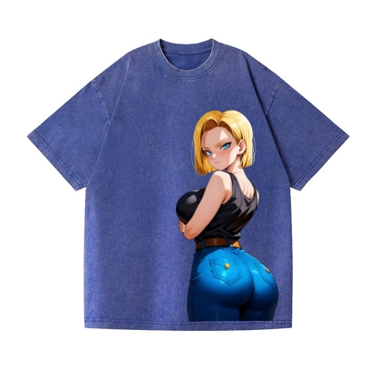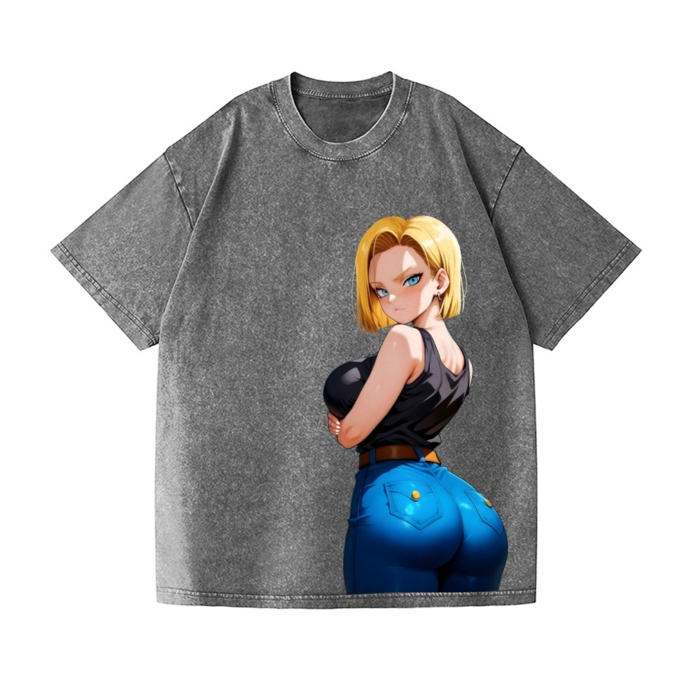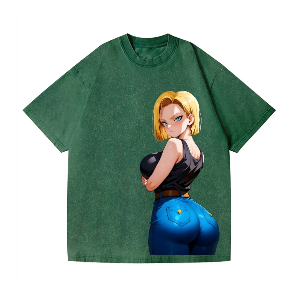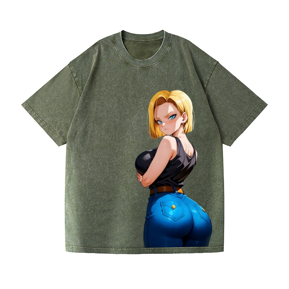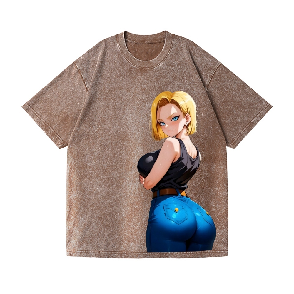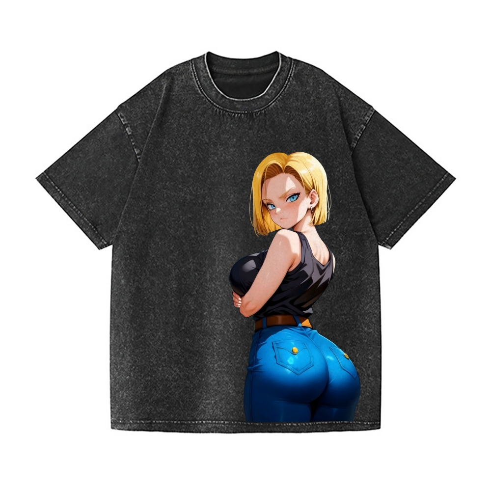 Android 18 Vintage Wash Japanese Design T-Shirt
