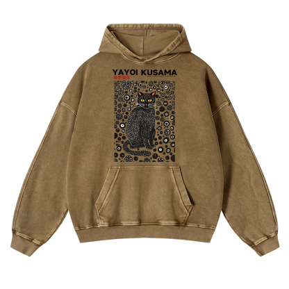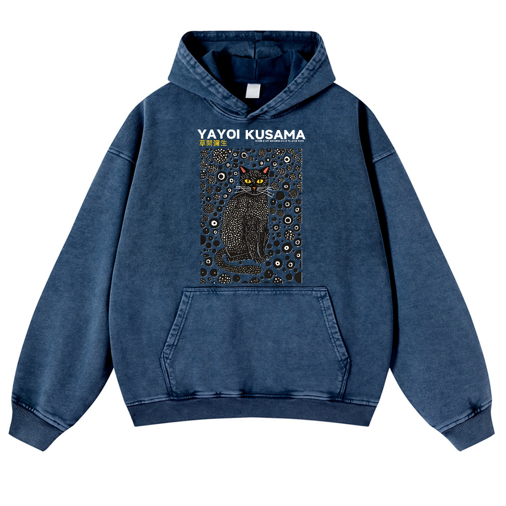 Yayoi Kusama cat Vintage Washed Thick Cotton Hoodie