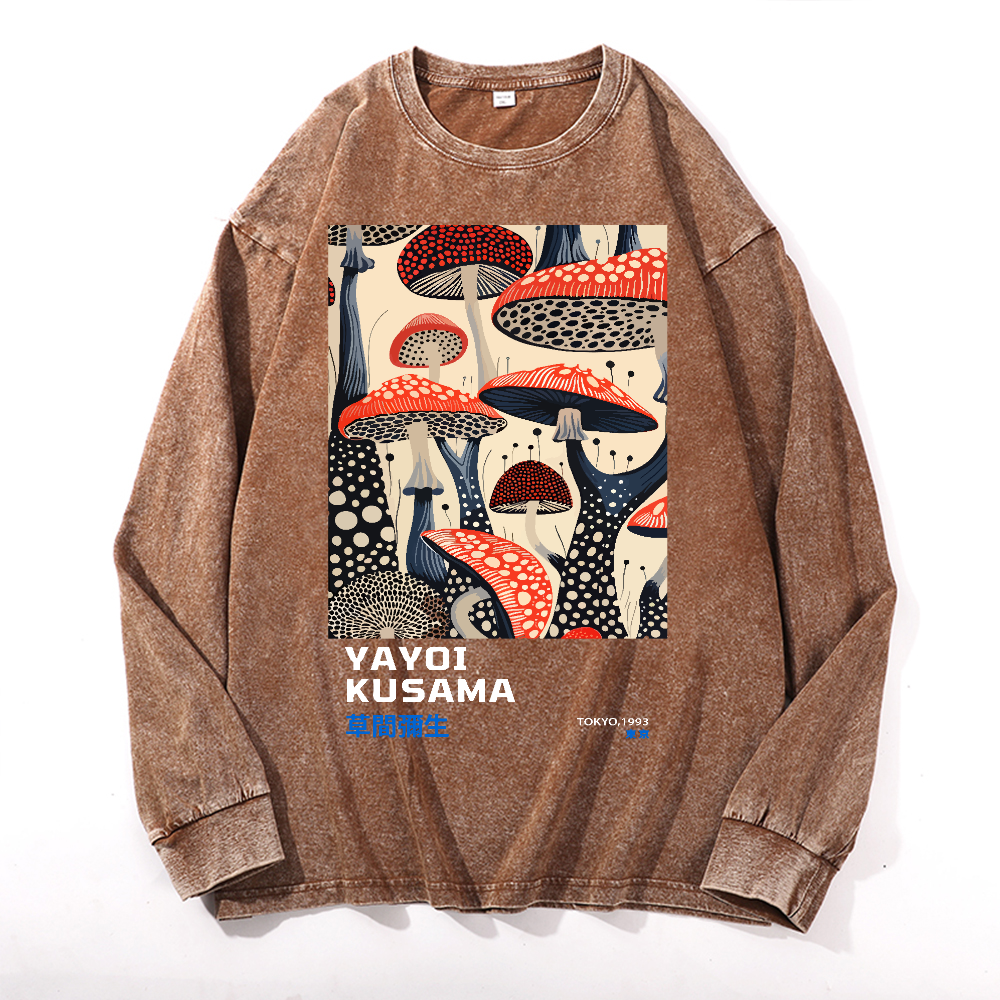 Yayoi Kusama Mushroom Vintage Cotton Wash Crewneck Sweatshirt