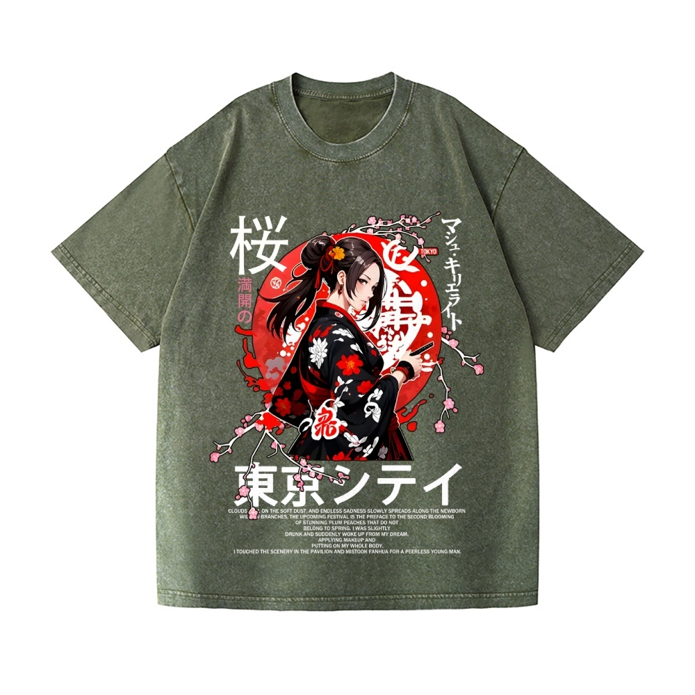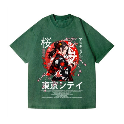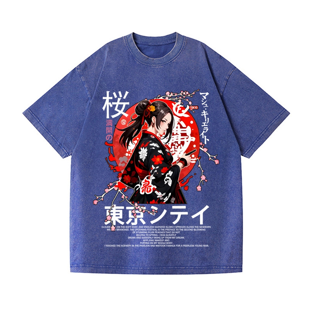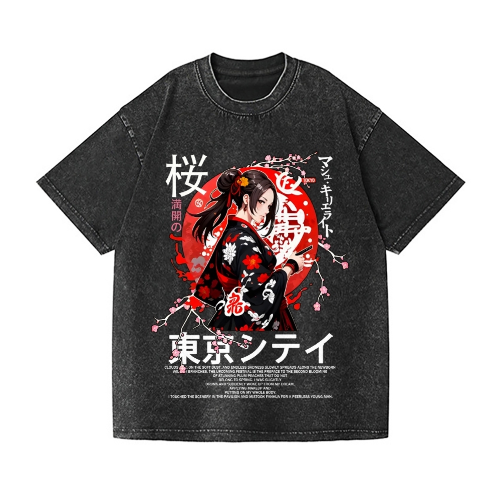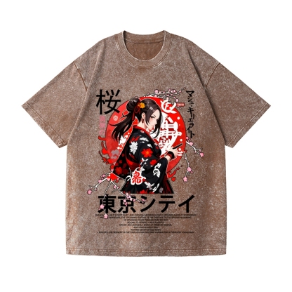 Anime Sakura Tokyo Girl Vintage Wash Japanese Design T-Shirt