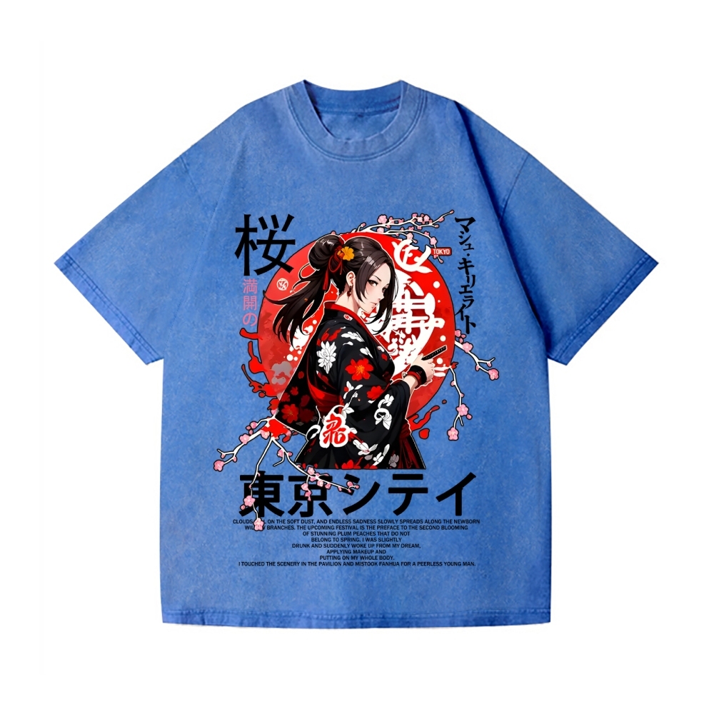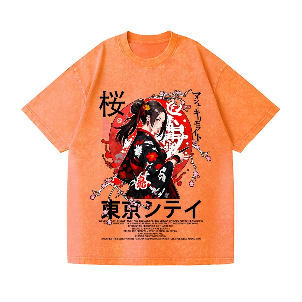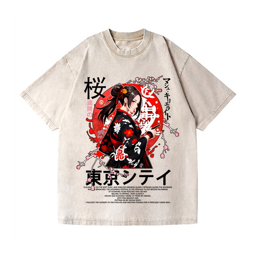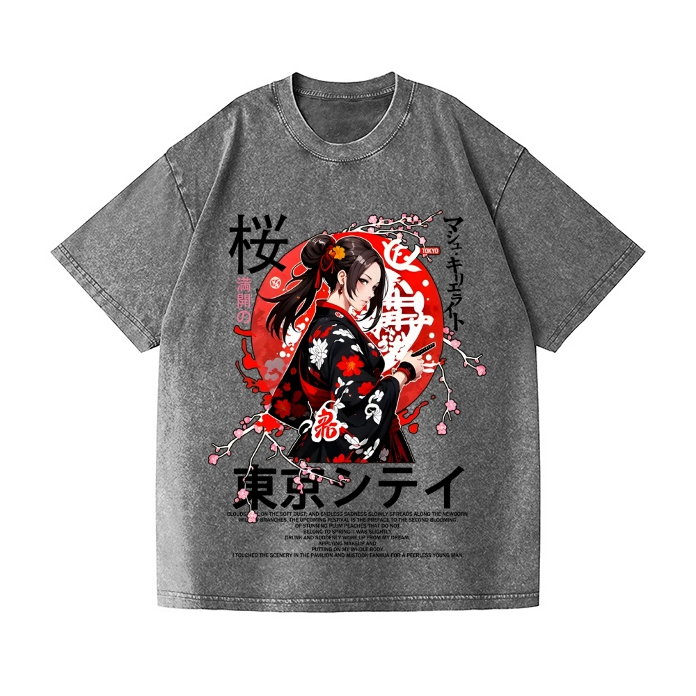 Anime Sakura Tokyo Girl Vintage Wash Japanese Design T-Shirt