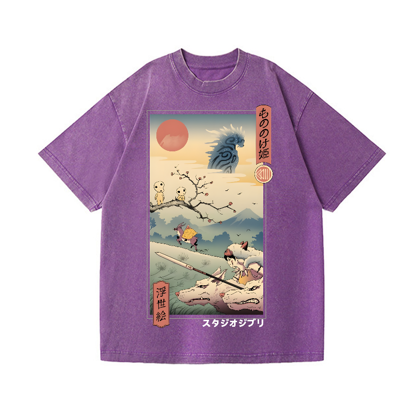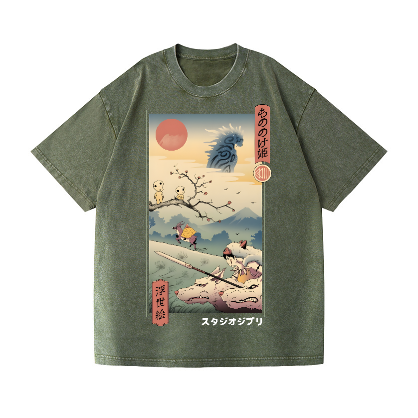 Ghibli Princess Mononoke Anime Ukiyoe Vintage Wash Japanese Design T-Shirt