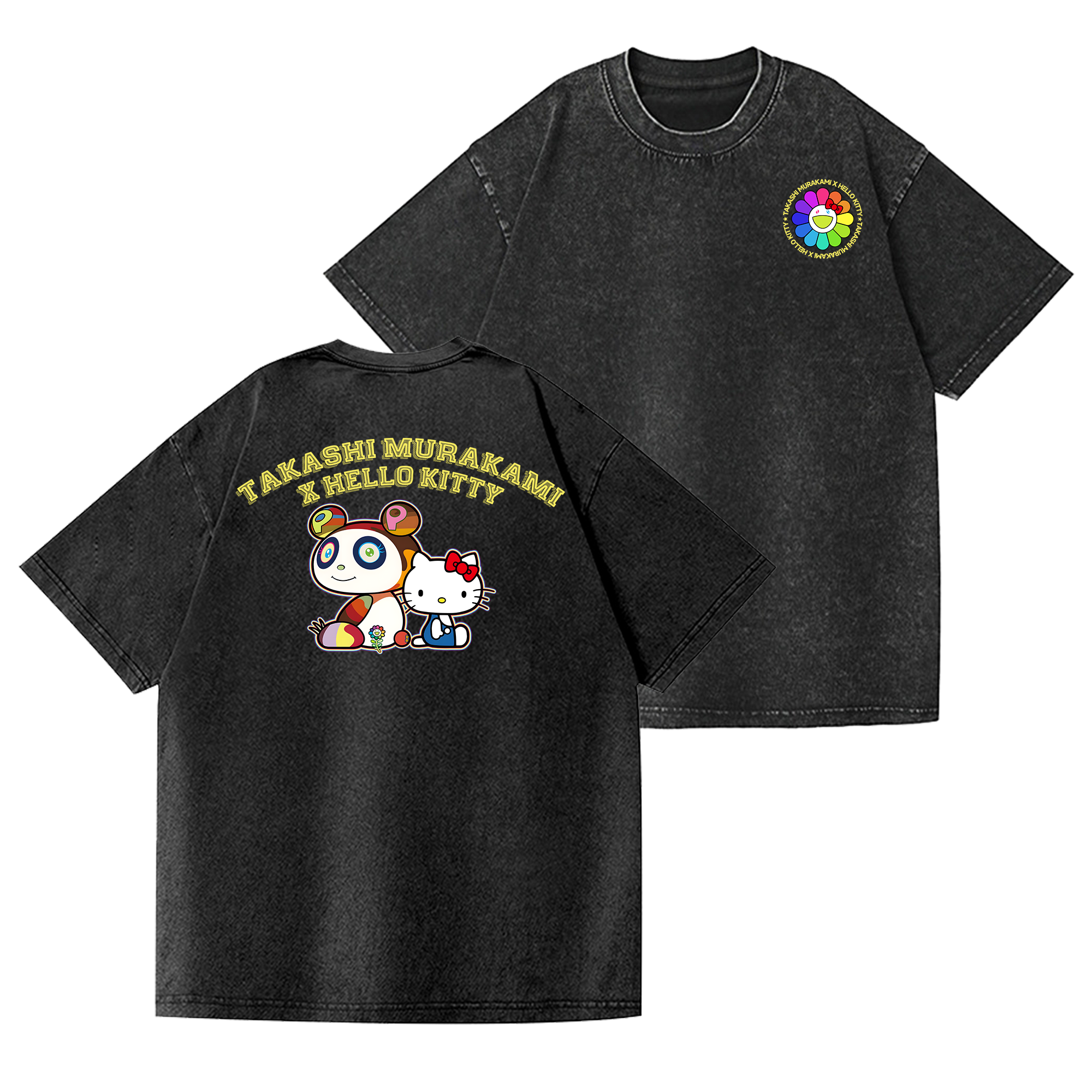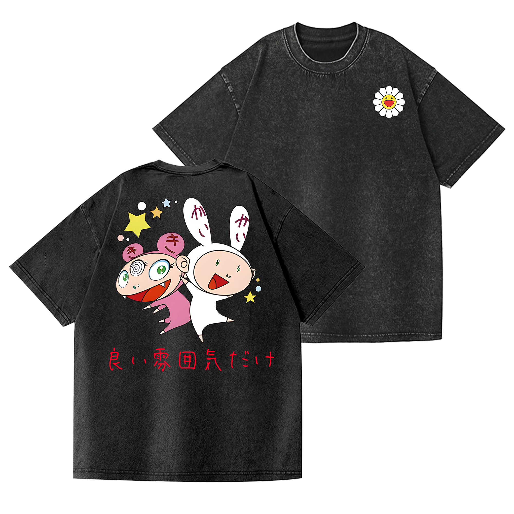 TM Japan Sunflower Lots Of Fun Kaikai Kiki Vintage Wash Japanese Design Back Art T-Shirt