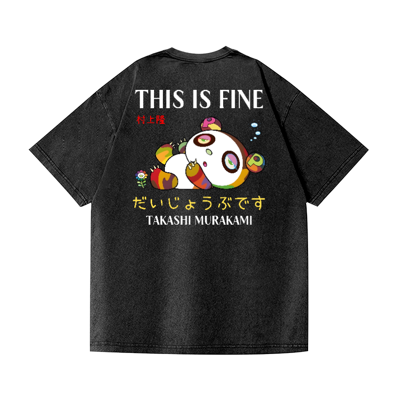 TM Japan Sunflower Panda This Is Fine Vintage Wash Japanese Design Back Art T-Shirt