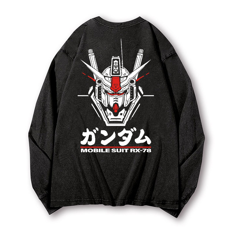 Mobile Suit RX-78 Gundam Vintage Washed Cotton Back Art Long-sleeve T-shirt