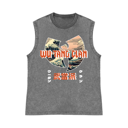 Wu Tang Clan Ukiyoe Wave Pure Cotton Wash-Dyed Sleeveless Tank Top