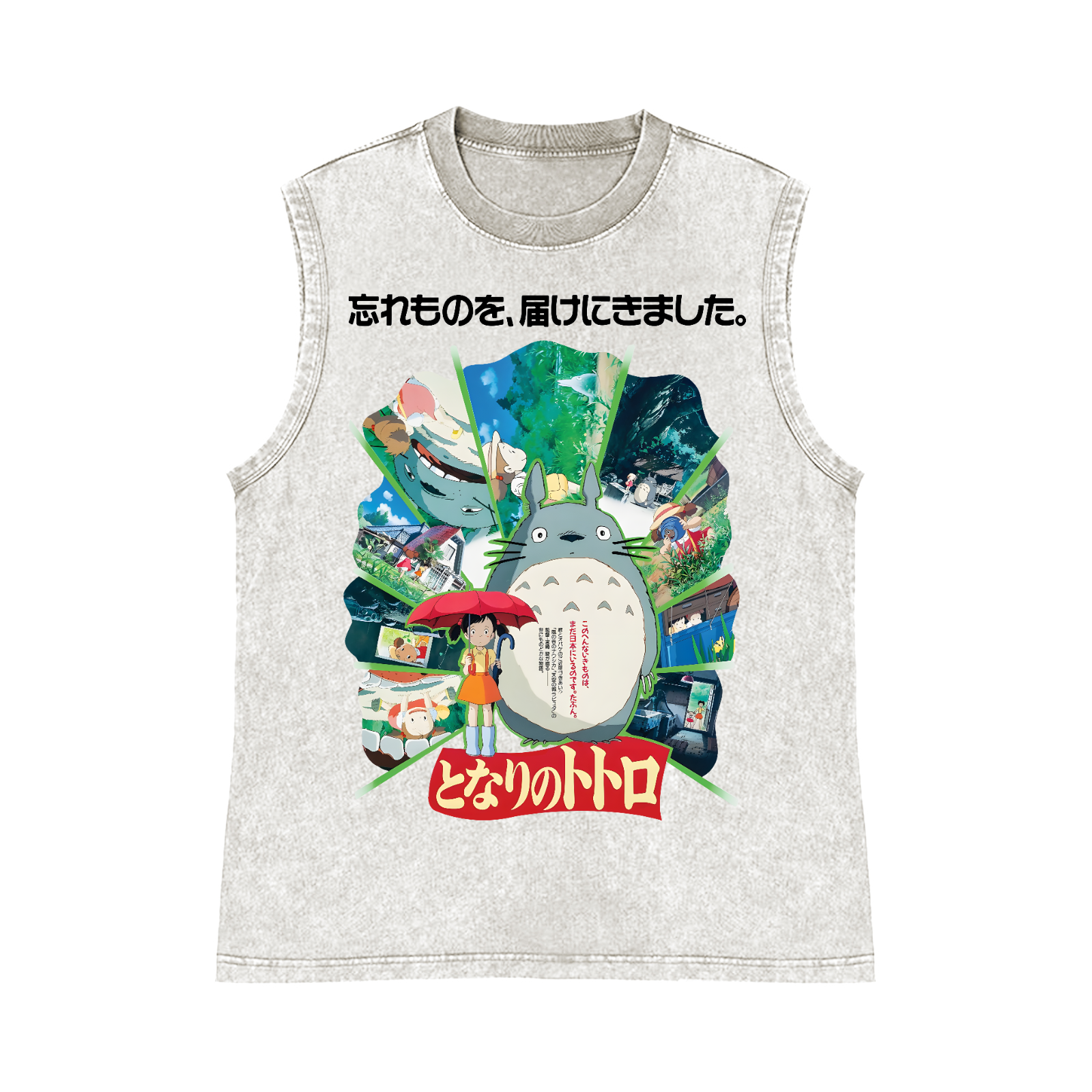 Ghibli Anime Pure Cotton Wash-Dyed Sleeveless Tank Top