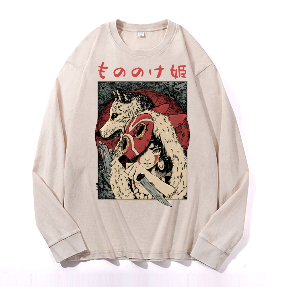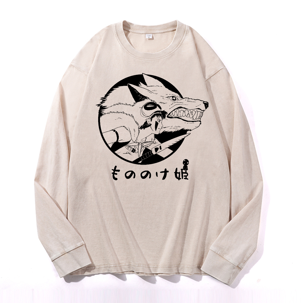 Ghibli Mononoke Hime Princess Mononoke Vintage Cotton Wash Long-sleeve T-shirt