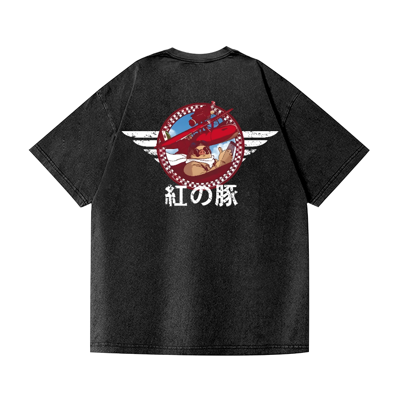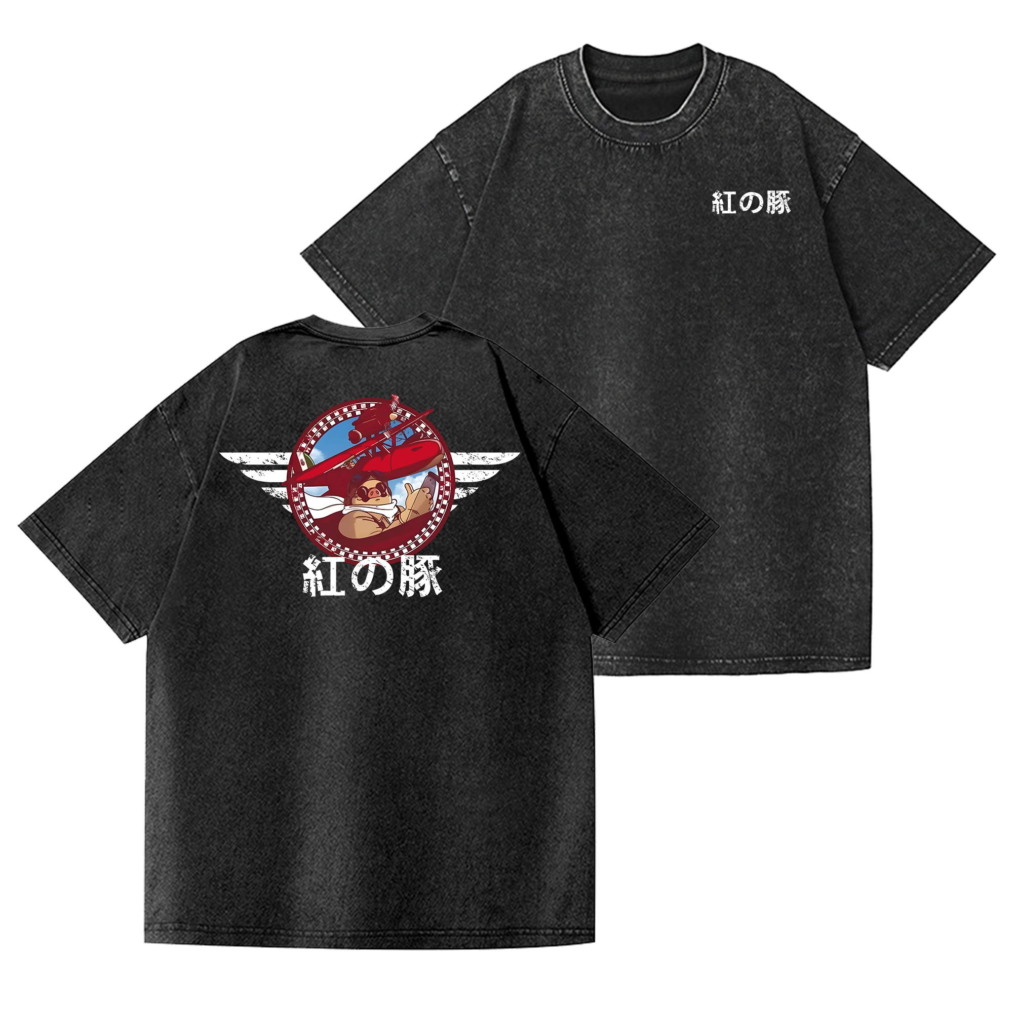 Ghibli Porco Vintage Wash Japanese Design Back Art T-Shirt