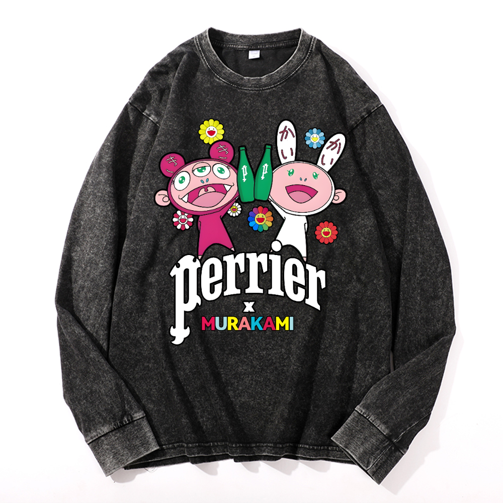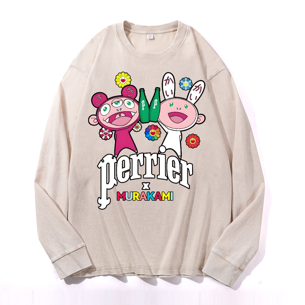 TM Sunflower Octopus Tokyo Japan Vintage Cotton Wash Long-sleeve T-shirt