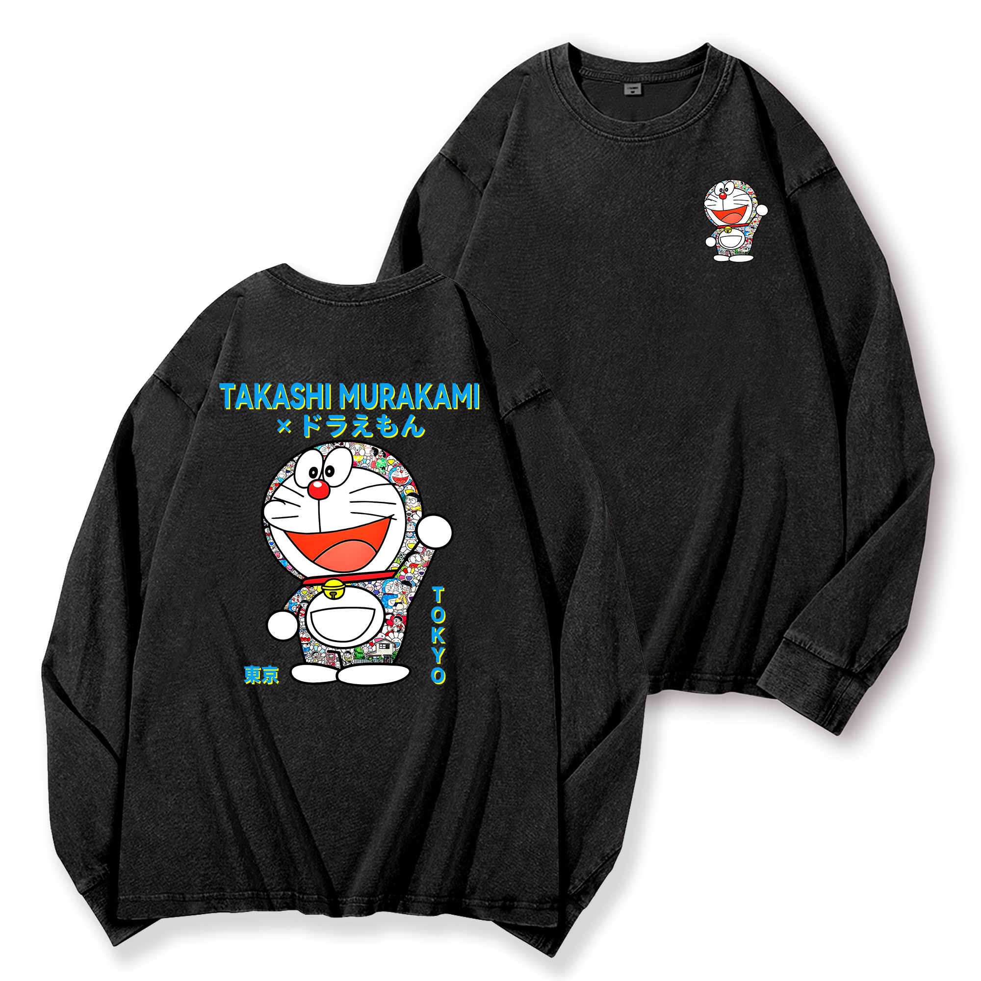 Japan Blue Cat TM Vintage Washed Cotton Back Art Long-sleeve T-shirt