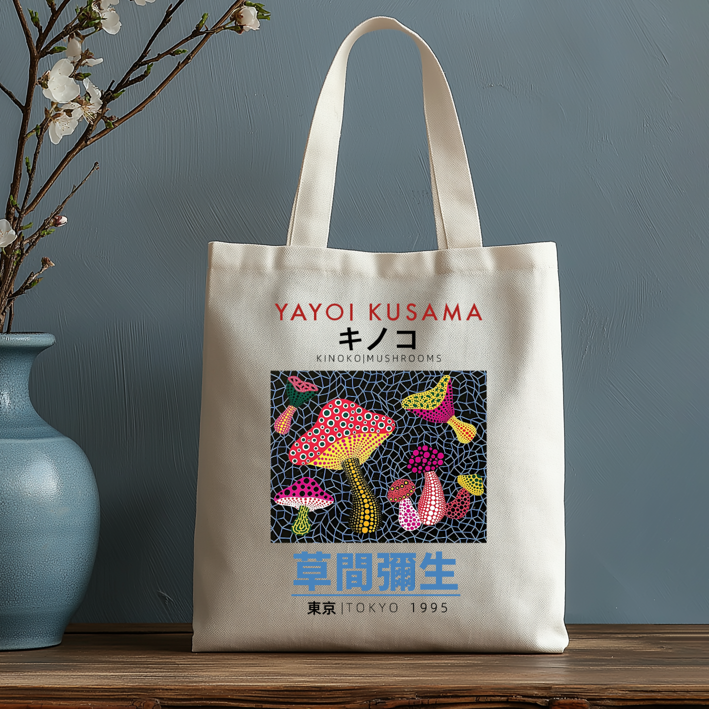 Yayoi kusama Mushroom Japanese Style Canvas Tote Bag