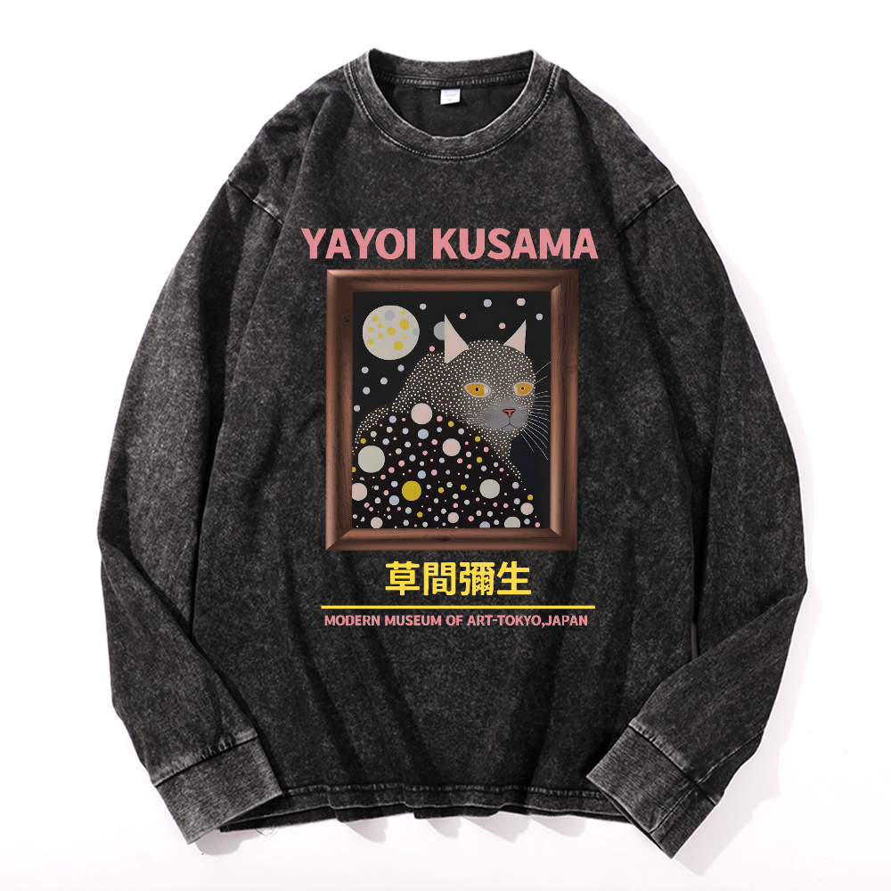 Yayoi Kusama Cat Vintage Cotton Wash Crewneck Sweatshirt