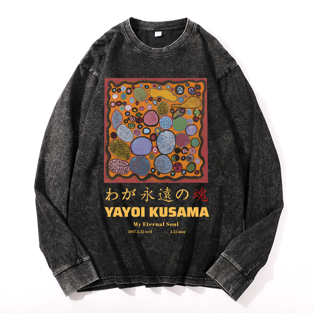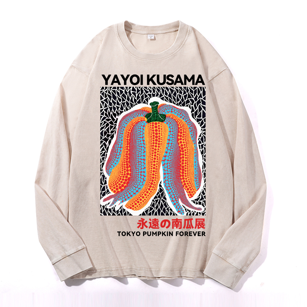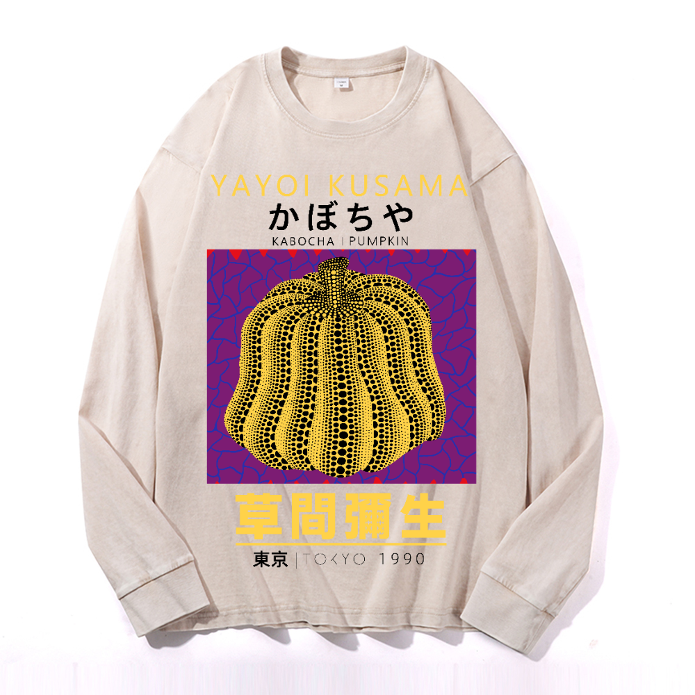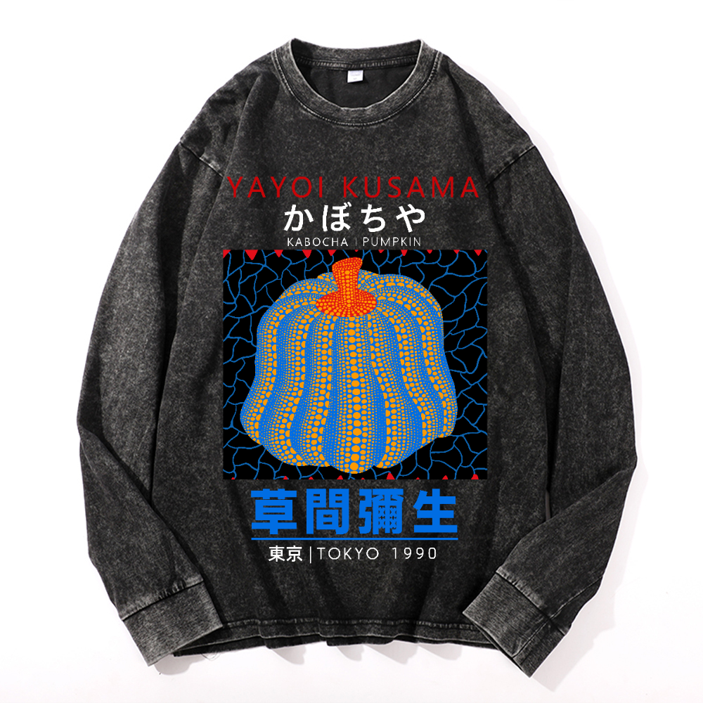 Yayoi Kusama Pumpkin Vintage Cotton Wash Crewneck Sweatshirt