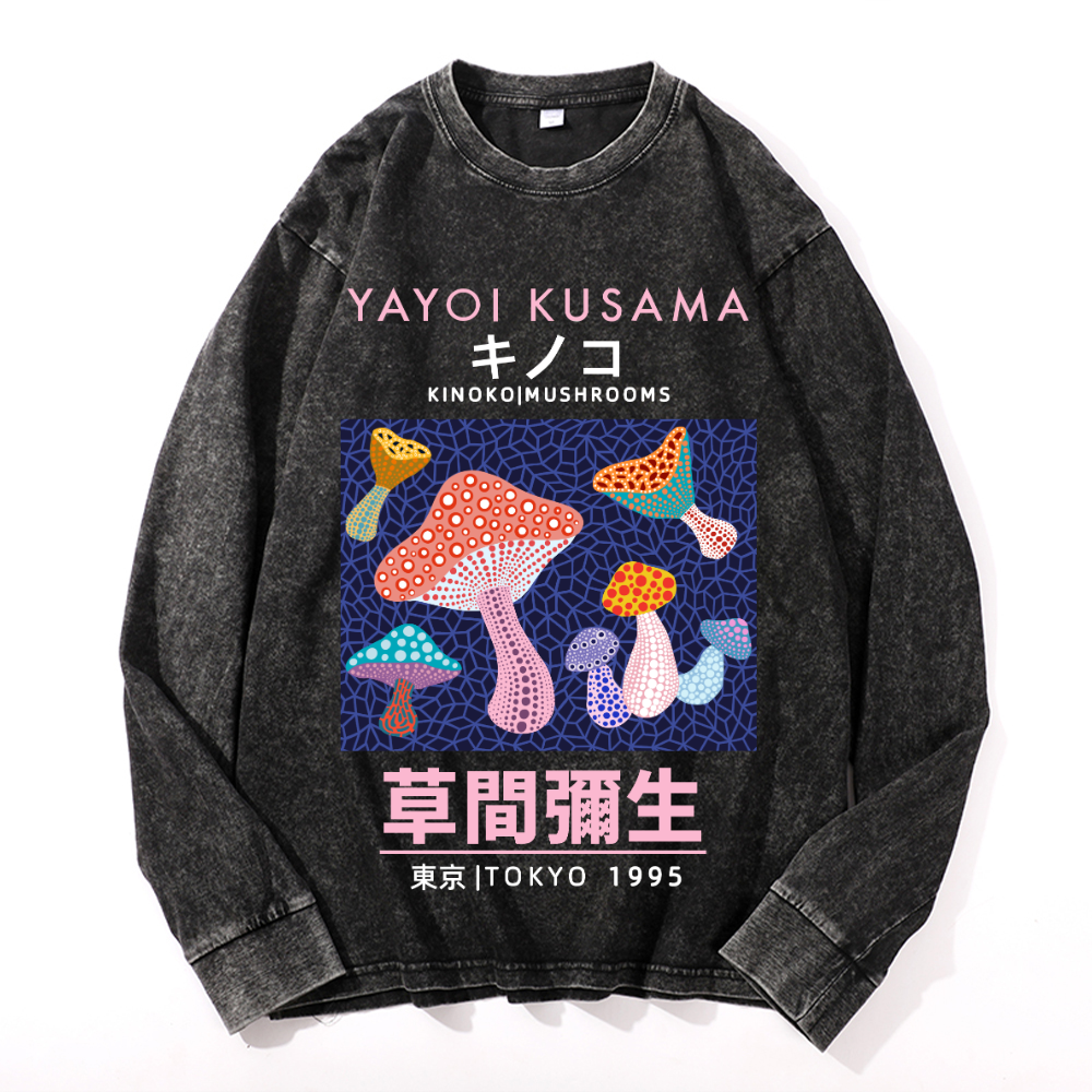 Yayoi Kusama Mushroom Vintage Cotton Wash Crewneck Sweatshirt