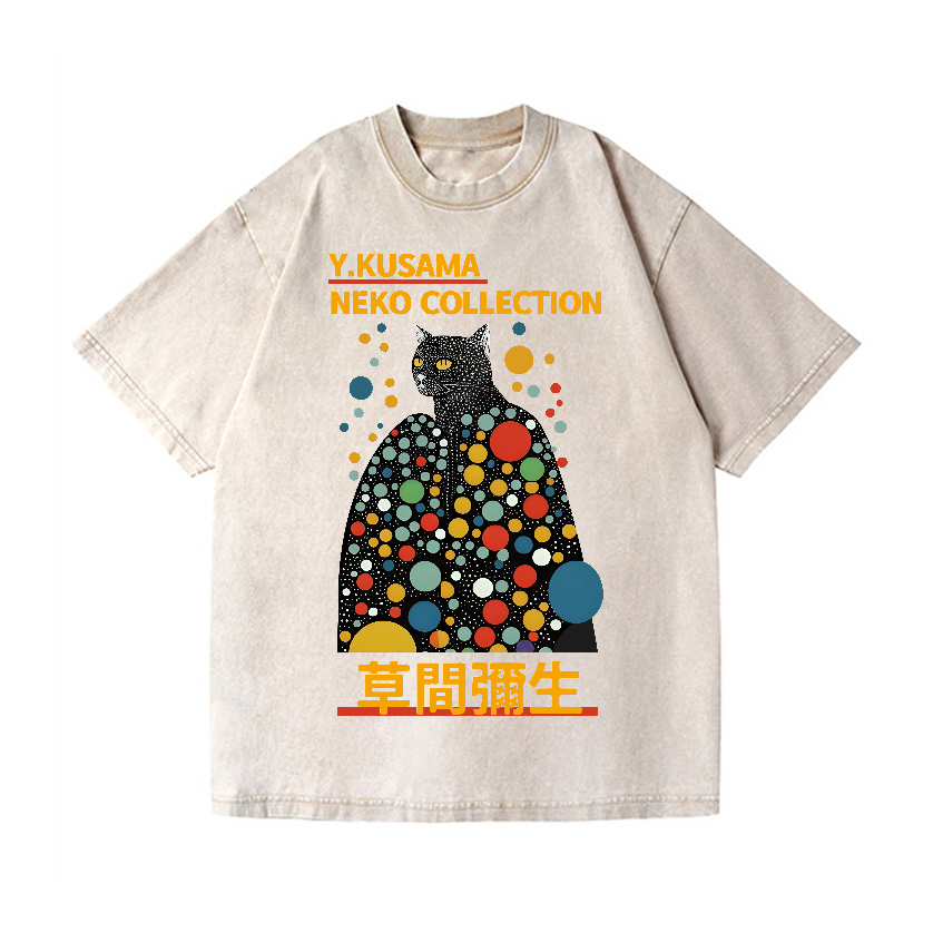 Yayoi Kusama Cat Vintage Wash Japanese Design T-Shirt