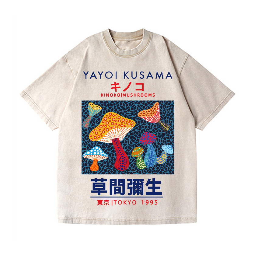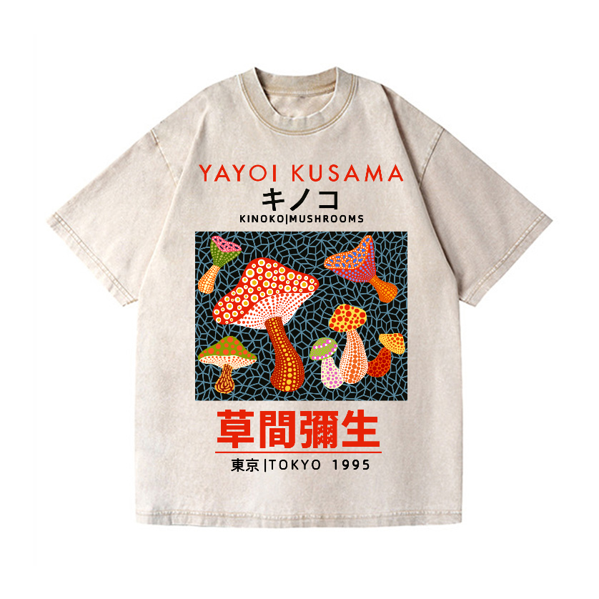 Yayoi Kusama Mushroom Vintage Wash Japanese Design T-Shirt