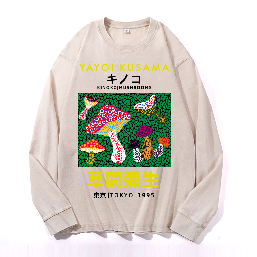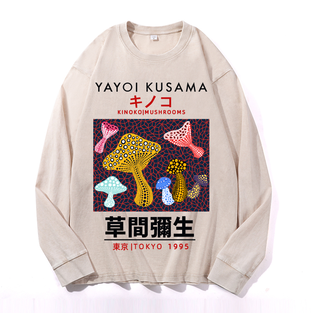 Yayoi Kusama Mushroom Vintage Cotton Wash Crewneck Sweatshirt