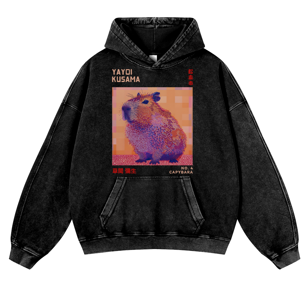 Yayoi Kusama Capybara Vintage Washed Thick Cotton Hoodie