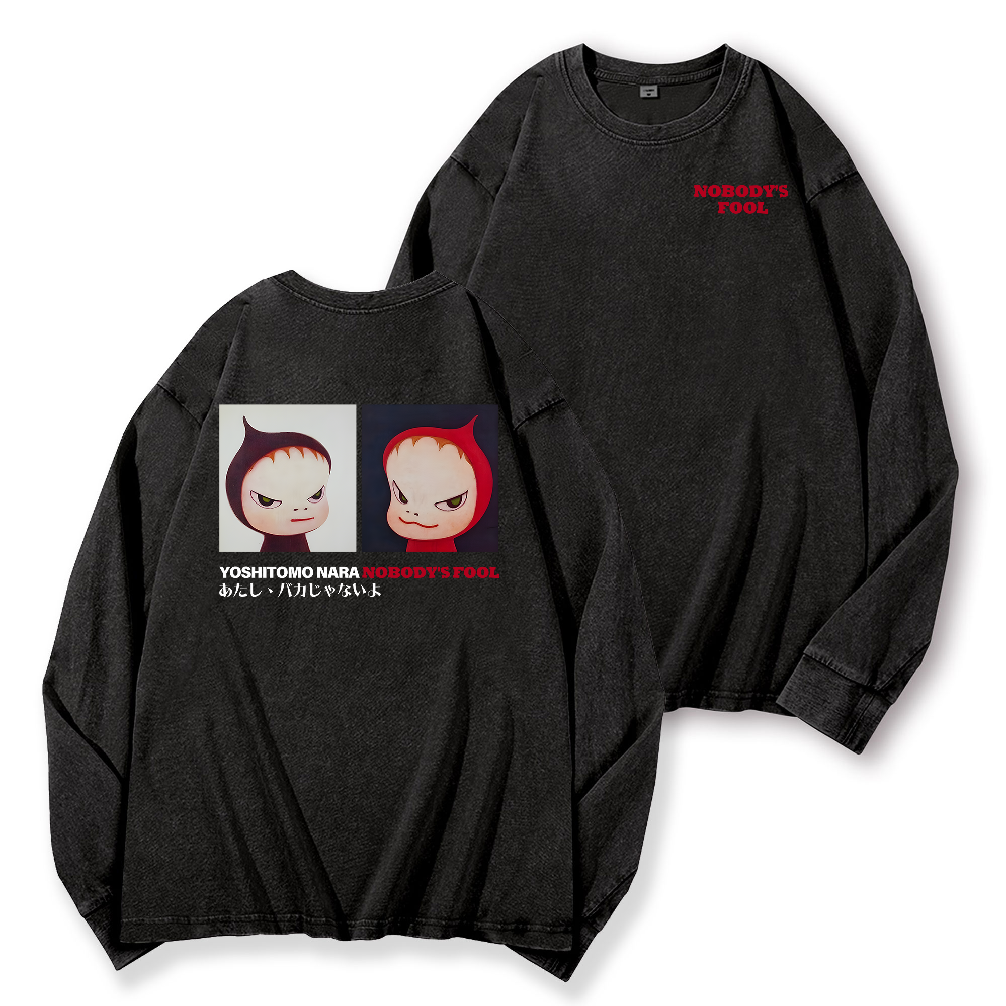 Yoshitomo Nara Vintage Washed Cotton Back Art Long-sleeve T-shirt