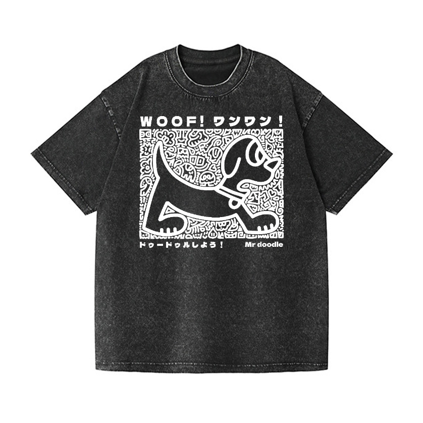 Mr Doodle Dog Woof Vintage Wash Japanese Design T-Shirt