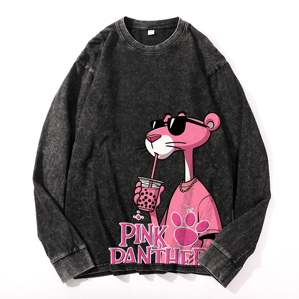 Pink Panther Vintage Cotton Wash Crewneck Long-Sleeve T-Shirt