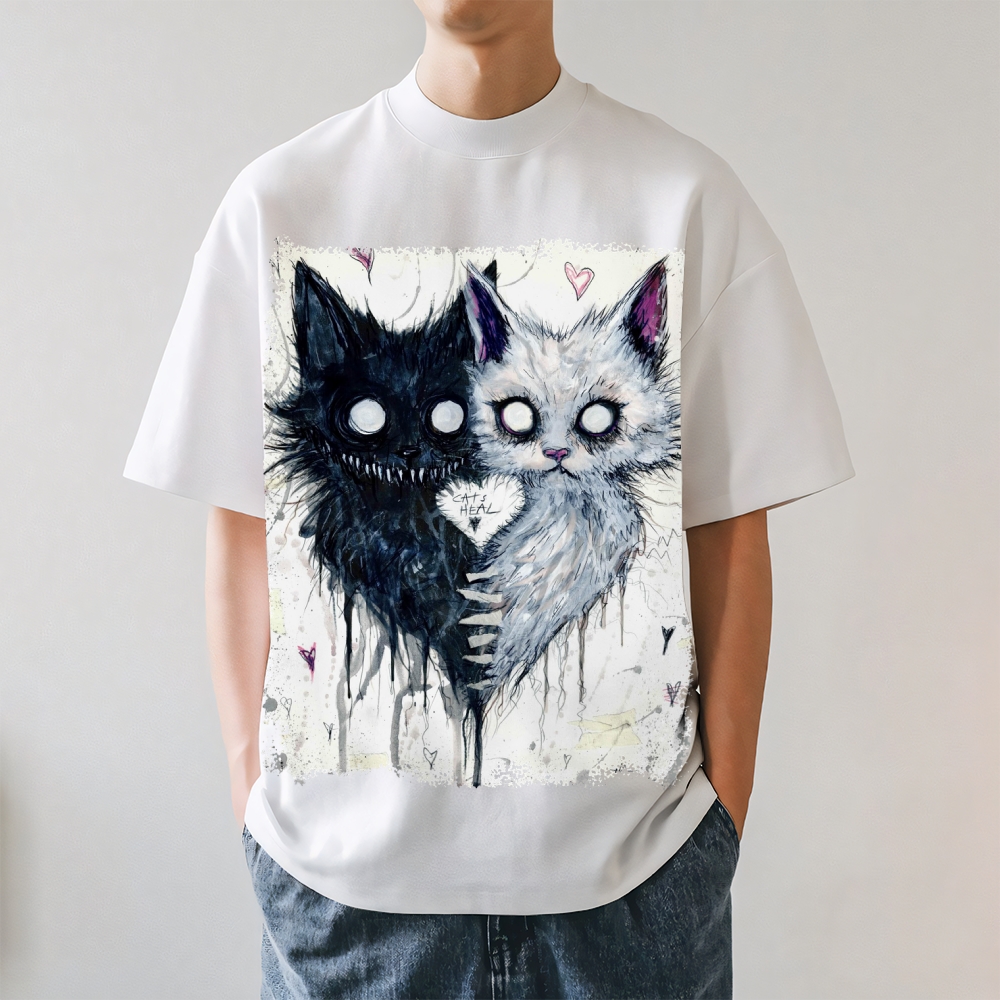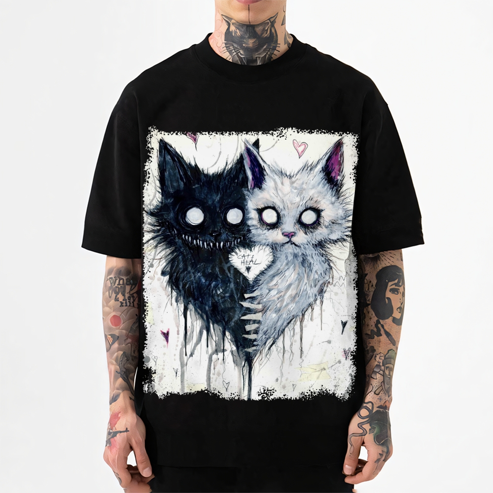 Dark Cat Vintage Wash Japanese Design T-Shirt