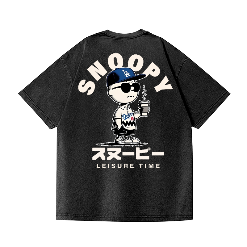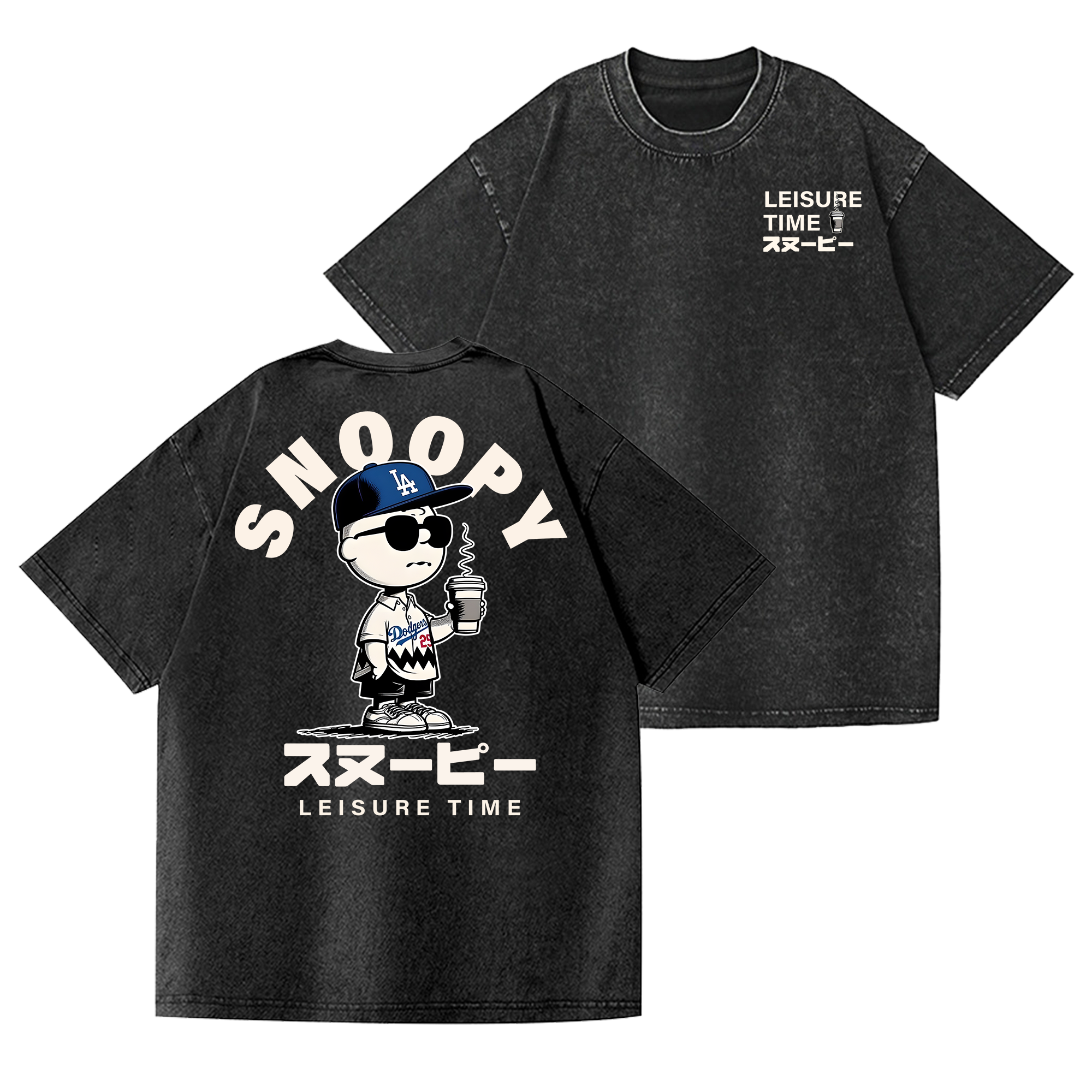 Dodgers Peanuts Baseball Vintage Wash Japanese Design T-Shirt